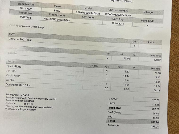 This 2011 BMW 3 Series 325i M Sport presents a remarkable opportunity with its exceptionally low mileage of just 63, 000 miles for its age, complemented by a full service history. This particular M Sport variant boasts a powerful 3.0 litre petrol engine, offering a dynamic driving experience. Notable features include Xenon headlights for enhanced visibility, electric front seat adjustment with driver memory for personalised comfort, and comprehensive Bluetooth telephone preparation with enhanced functionality, ensuring seamless connectivity on the go. The extended storage options also add a practical dimension to this well appointed vehicle.The BMW 3 Series 325i M Sport is renowned for its engaging driving dynamics and premium feel, and this example further stands out with its low insurance group rating, making it an economical choice. The combination of its potent 3.0L engine, M Sport trim, and the carefully maintained full service history indicates a vehicle that has been cherished and well looked after, setting it apart from other models on the market. This 325i M Sport offers a compelling blend of performance, luxury, and practicality..