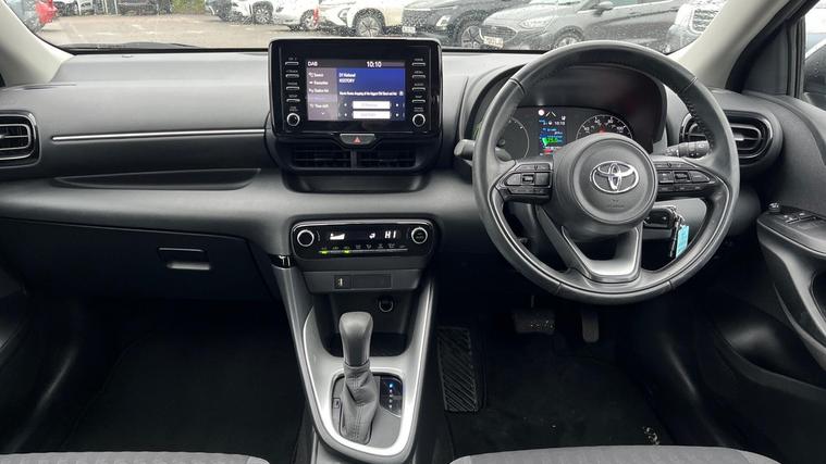 This 2022 Toyota Yaris VVT-h Icon is a prime example of exceptional provenance, boasting a single owner and remarkably low mileage of just 21, 836 miles. As a Toyota manufacturer approved vehicle, you can be assured of its quality and care. This Icon trim model features a responsive 1.5L petrol hybrid engine, meeting Euro 6 emission standards. Notable features include automatic headlights that switch on when needed, and the advanced Toyota Safety Sense 2 suite which incorporates adaptive cruise control for a more relaxed driving experience. Parking is made simpler with a reversing camera, and you can maintain a comfortable cabin temperature thanks to the automatic air conditioning. Stay connected on the go with smartphone integration, including Apple CarPlay and Android Auto.This Yaris VVT-h Icon offers significant advantages over similar vehicles. Its impressive fuel economy of 69 mpg means fewer trips to the petrol station and lower running costs. Furthermore, its low insurance group rating contributes to more affordable ownership. The low CO2 emissions also highlight its efficiency and environmental consideration. This combination of economical running, advanced safety features, and modern technology makes this Yaris a compelling choice..