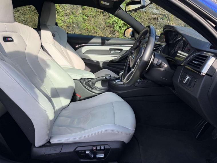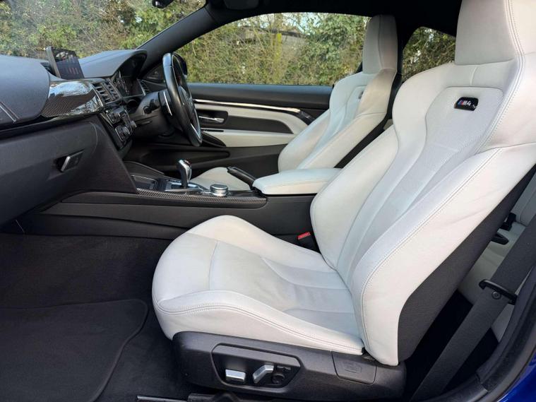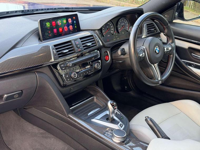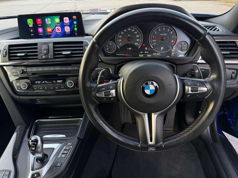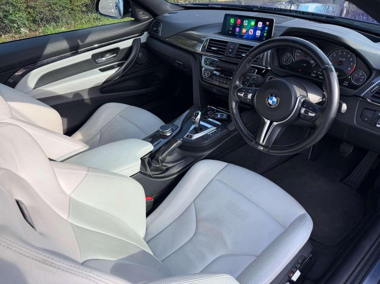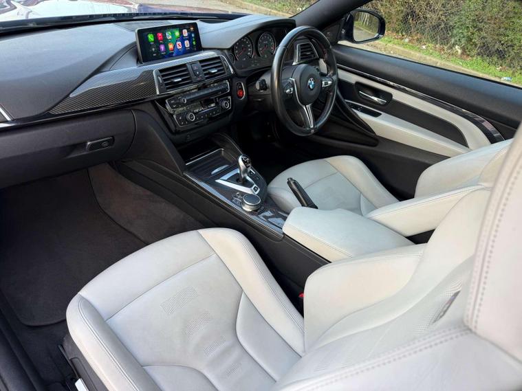 Presented in the iconic and highly sought-after San Marino Blue, this F82 M4 is the perfect balance of aggression and class. A proper driver’s car with the looks and spec to match.This example sits on the factory 19” M Light Double Spoke 437M alloys in Jet Black, perfectly complementing the deep metallic finish. It also benefits from a full carbon fibre bodykit, giving the car a sharper, more purposeful stance without compromising OEM+ appeal.Inside, the cabin is finished in Extended Silverstone Merino Leather, contrasted beautifully with Carbon Fibre interior trim with Black Chrome finisher. A clean, premium environment that still feels unmistakably M.Key specification includes:M Head-Up DisplayHarman Kardon Loudspeaker SystemReversing Assist CameraSun Protection Glazing19” 437M Jet Black AlloysFull Carbon Fibre BodykitFull BMW Service HistoryMechanically, this car has been maintained correctly with full BMW service history, giving real confidence in ownership.The F82 remains one of the last truly analogue-feeling M cars – twin-turbo straight-six power, rear-wheel drive balance, and unmistakable road presence. In this colour and specification, it stands out for the right reasons..
