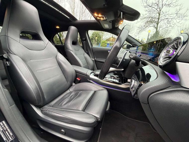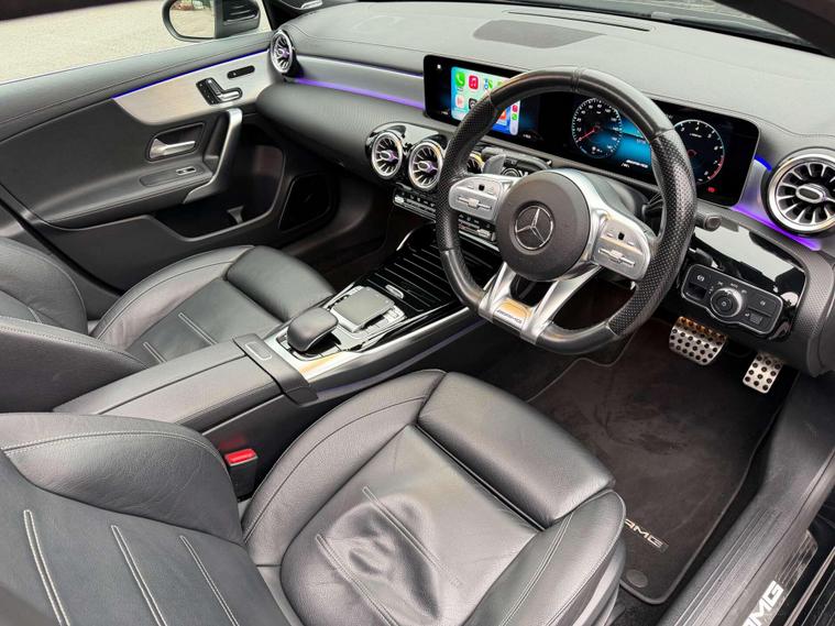 This 2019 Mercedes-Benz A35 AMG Premium Plus is the perfect blend of compact practicality and serious AMG performance, finished in a sharp specification that gives it real road presence.Powered by the 2.0-litre turbocharged engine producing 306bhp and paired with the lightning-fast 7G-DCT gearbox and intelligent 4MATIC all-wheel drive system, the A35 delivers relentless grip and urgency, launching from 0-62mph in just 4.7 seconds. It’s quick, responsive and confidence-inspiring in all conditions.This Premium Plus example comes beautifully specified, featuring the panoramic sliding glass roof, Burmester surround sound system, dual widescreen digital cockpit with MBUX navigation and voice control, Apple CarPlay, heated electric memory seats, 64-colour ambient lighting and Keyless-Go comfort package. The cabin feels modern, premium and properly AMG.Externally, this car stands out with blacked-out AMG alloy wheels and an aggressive aero kit that sharpens the stance and gives it a more purposeful look. The styling details combined with the muscular AMG bodywork create a hatchback that looks as serious as it dealer's website enough for daily use yet genuinely exciting when switched into Sport or Sport+, this A35 delivers the best of both worlds.A superb example with the right spec, the right look and the right performance..