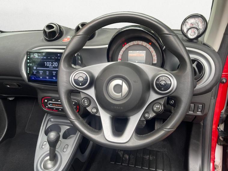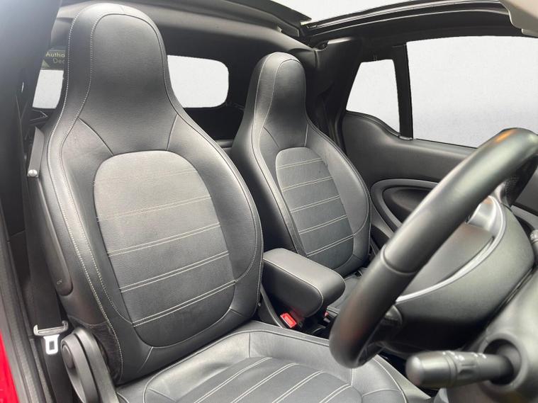 This 2017 Smart Fortwo Prime is presented with a clear vehicle history check, offering you peace of mind. This compact city car is equipped with a 1.0 litre petrol engine and meets Euro 6 emission standards. The Prime trim includes the desirable Cool and Audio Package, featuring automatic climate control and Bluetooth connectivity, ensuring a comfortable and connected driving experience. For added comfort, especially during colder months, both the driver and front passenger seats are heated.The Smart Fortwo Prime stands out with its impressive fuel economy, achieving up to 66 miles per gallon, which indicates it is more economical than many other vehicles in its class. Furthermore, this model boasts a surprisingly large boot space for its size, making it practical for everyday errands and shopping trips. Its low CO2 emissions also highlight its efficiency and environmental consideration compared to similar cars..