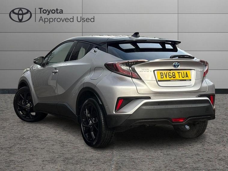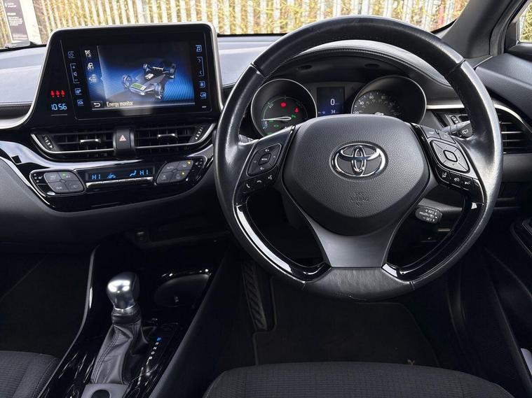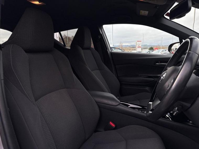 This 2018 Toyota C-HR VVT-h Dynamic is a Toyota manufacturer approved vehicle, offering peace of mind with a 12 month warranty and MOT valid until June 2026. It boasts a full service history, with the last service completed on 2025-06-14 at 59135 miles. This Euro 6 compliant model features a 1.8L petrol hybrid engine and comes equipped with a reversing camera for parking assistance, Bluetooth connectivity, heated front seats for added comfort, LED headlights with sequential indicators, and a blind spot monitor system.The Toyota C-HR Dynamic stands out with its impressive fuel economy, achieving up to 60 mpg, which indicates it is more economical than many similar vehicles. Furthermore, its low insurance group and low CO2 emissions highlight its cost effectiveness and environmental consideration compared to other cars in its class..