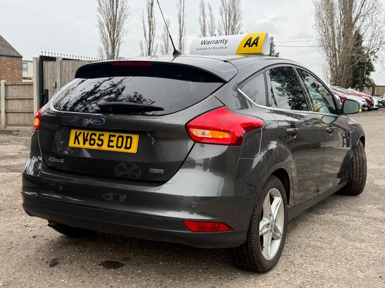 This 2015 Ford Focus T Titanium presents an exceptional opportunity with its remarkably low mileage of just 36, 062 miles, a significant advantage for a vehicle of its age. This well maintained example has had only two owners and boasts a full service history, ensuring its provenance is clear and reassuring. Under the bonnet, you'll find an efficient 1.0 litre petrol engine, compliant with Euro 6 emissions standards. The Titanium trim level offers a host of desirable features, including rear parking sensors for easier manoeuvring, electronic automatic temperature control for a comfortable cabin environment, automatic headlights that adjust to lighting conditions, and Bluetooth connectivity for audio streaming and handsfree calls. Also included is a 12 month AA Breakdown cover , and a 1 month warranty for engine, gearbox and clutch. AA extended warranty is available to purchase for this car. The Ford Focus T Titanium is designed to impress with its practicalities and running costs. Its fuel economy is a standout feature, achieving an impressive 60 miles per gallon, which is considerably better than many other vehicles in its class. This efficiency is further complemented by low CO2 emissions, making it a more environmentally conscious choice. Additionally, the generous boot space provides ample room for shopping, luggage, or equipment, making it a versatile option for everyday use. This vehicle also comes with a one month warranty for added peace of mind..