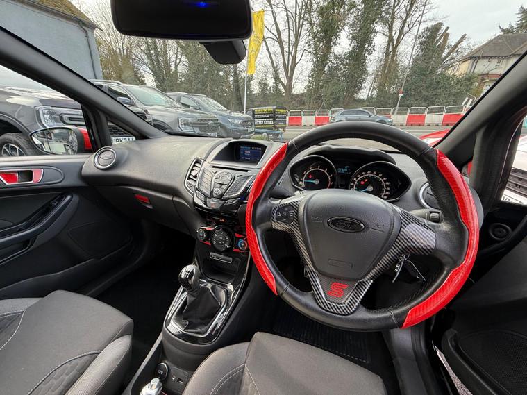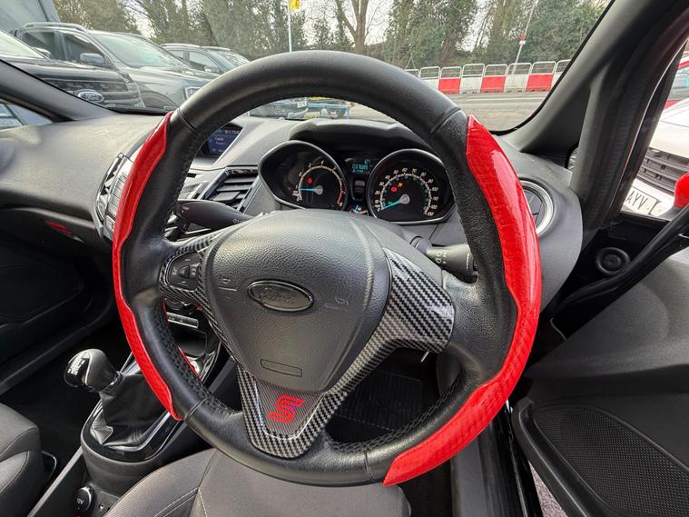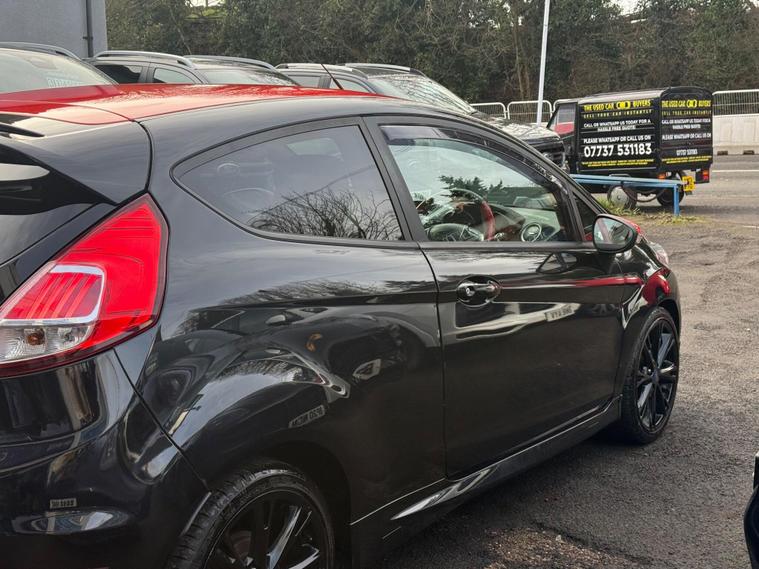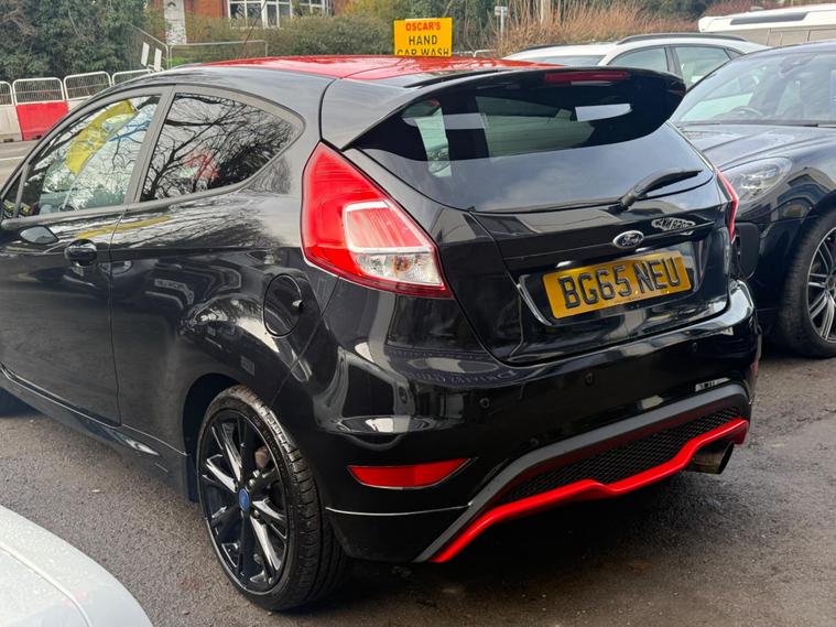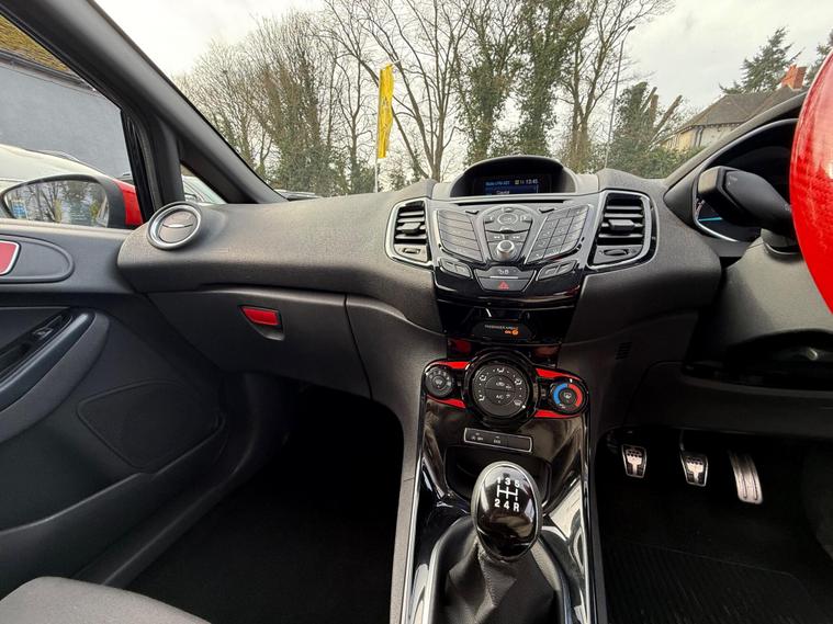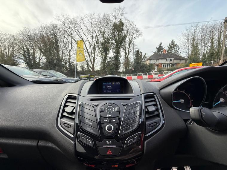 2015 Ford Fiesta 1.0T EcoBoost Zetec S Euro 6 (s/s) 3dr37, 652 miles4 former keepers2 KeysService history (this is all we currently hold on file; this does not confirm whether any additional services may have been carried out):18/10/2025 – 37, 168 miles – Vertu Motors Shirley29/05/2025 – 35, 697 miles – Vertu Motors ShirleyA new MOT will be completed as part of the preparation process.SpecificationAftermarket Outlaw exhaust17-inch alloy wheels5-speed manual gearboxAir conditioningAUX and USB connectivityBlack and red cloth interiorBlack Edition stylingBluetoothCD playerDAB digital radioHeated windscreenHeated wing mirrorsMulti-function steering wheelPrivacy glassStop/Start functionVoice commandWhen walking around the exterior of this stunning Ford Fiesta Black Edition, finished in black and red and styled with 17-inch alloy wheels and privacy glass, it presents exceptionally well. Upon opening the driver’s door, you are welcomed by a black and red cloth interior and a well-equipped cockpit featuring Bluetooth connectivity, heated wing mirrors, a multi-function steering wheel, heated windscreen, voice command, air conditioning, Stop/Start function, DAB digital radio, and music streaming via CD player, AUX, USB and Bluetooth.The 1.0T EcoBoost engine delivers excellent performance and efficiency, returning up to 62.8 mpg and achieving 0–60 mph in approximately 9 seconds.A 3-month comprehensive warranty is included, with the option to extend cover for up to two years. Part exchange is welcome at any value, and our Buying Department can provide prompt valuations. Nationwide delivery is available at cost upon request. You can reserve this vehicle today with a £250 fully refundable deposit.We have over 150 vehicles in stock. Established in 2021, we pride ourselves on our excellent customer service and have over 200 positive reviews..