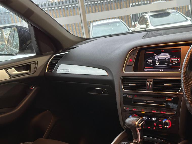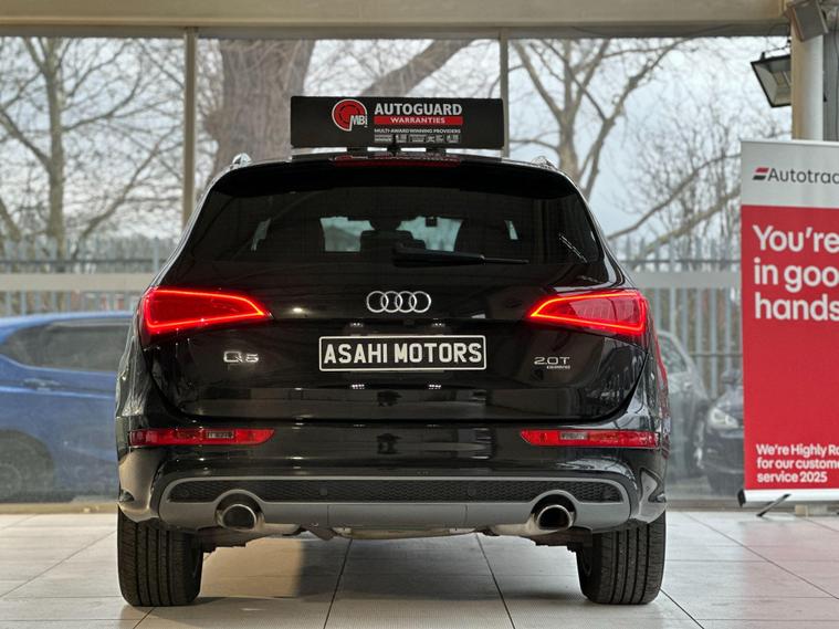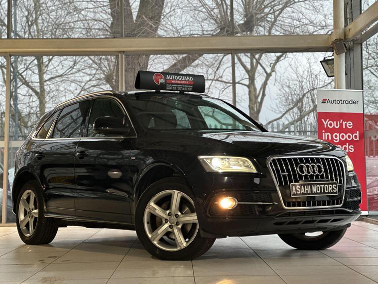 (ID - AGL669). Introducing this great AUDI Q5 TFSI QUATTRO S-LINE - 2014. Fully clear HPI reports available. AVAILABLE IN OUR LONDON BRANCHAn excellent black SUV with ample boot space and a versatile interior, perfect for family trips and outdoor adventures with a black colour part leather interior scheme. ?Fully ULEZ compliant. Features included: ✓ Can be upgraded to the latest Apple CarPlay for phone connectivity with a huge range of applications (Spotify/Calls/Waze).✓ TFSI Quattro✓ S-line✓ Electrochromatic (Auto Dimming Mirror)✓ Start - Stop System ✓ Reverse Camera✓ Driver Assist✓ Paddle Shifter✓ Voice Control✓ Automatic Headlight System ✓ Parking SensorsWarranty & Delivery:?️ This car comes with a 6 months Autoguard Premium Warranty ? Mainland Nationwide delivery available at an extra charge. Special Offer:Purchase this vehicle through our AA page and receive 12 months’ free basic AA breakdown cover ??️Service History:? Well-maintained dealer and independent service history? Fresh service carried out upon sale? Battery health check included?️ Road test and pre-delivery inspection upon saleVehicle History:No need to worry – every car comes with:? Independent HPI background report and Previous ownership details? Car grading and mileage verification via CarVXSourced from Parent Company in Japan:✓ Carefully selected high-grade vehicles ??✓ Same parts and insurance compatibility as UK models ??Reserve Today:? Secure this car with a holding deposit today! ?Important Information: Road Tax/Features/Specification Information: Please contact our sales team directly for the latest road tax costs and exact vehicle features/specification/model, as this can vary from online listings. ?.