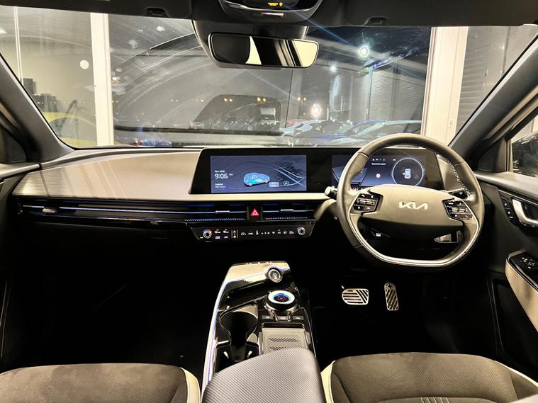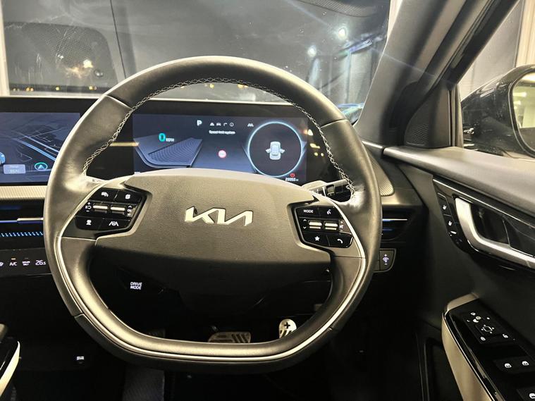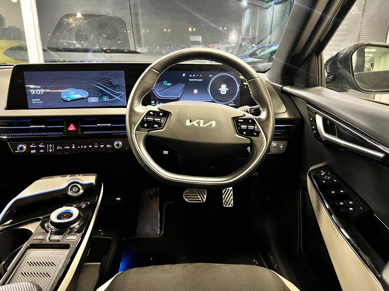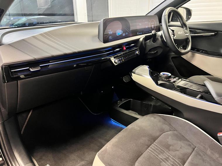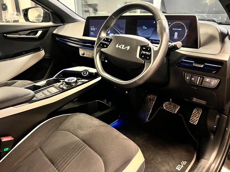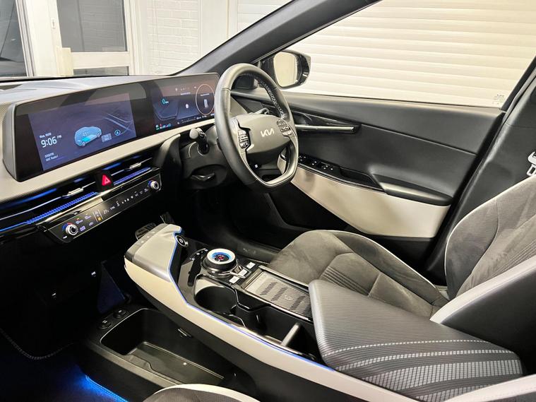 This 2023 Kia EV6 GT Line boasts a clear vehicle history, offering peace of mind alongside its impressive electric performance. As a Four Wheel Drive model, it features a substantial 77 kWh battery, providing a maximum range of 314 miles when new. This electric vehicle is equipped with Dual Automatic Air Conditioning for optimal comfort, rear parking sensors to aid manoeuvring, and Navigation Smart Cruise Control with a speed limiter for effortless journeys. You'll also appreciate the convenience of a heated steering wheel and Bluetooth connectivity with voice recognition.The Kia EV6 GT Line stands out with its remarkable acceleration, achieving 0 to 62 miles per hour in just 5.2 seconds, demonstrating its dynamic capabilities. Its impressive 314 mile maximum range highlights its efficiency and suitability for longer trips. Furthermore, the large boot space offers ample practicality for everyday needs and adventures. Charging is also efficient, with a full charge at home taking approximately 12 hours and 30 minutes on a 7kW charger, while the fastest public charging can take the battery from empty to 80% in as little as 20 minutes, making it a compelling choice in the electric vehicle market..