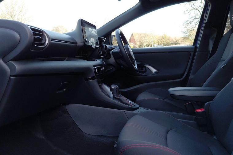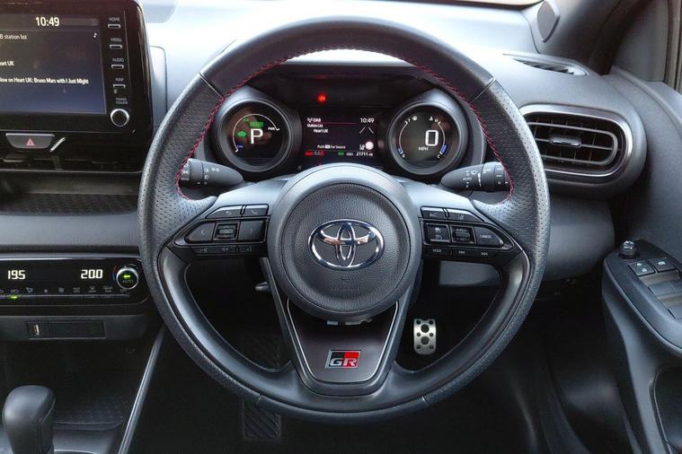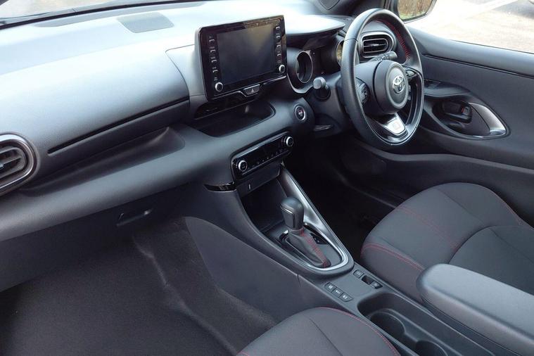 This 2022 Toyota Yaris VVT-h GR SPORT is a Toyota manufacturer approved vehicle, boasting a full dealership service history and having had only one owner from new, all backed by a 12 month warranty for your peace of mind. This stylish hatchback is powered by an efficient 1.5 litre petrol hybrid engine, meeting Euro 6 emissions standards. It comes equipped with a host of desirable features, including smartphone integration with Apple CarPlay and Android Auto, allowing seamless connection to your devices. The advanced Toyota Safety Sense 2 suite provides adaptive cruise control for relaxed journeys, while smart keyless entry offers ultimate convenience. Automatic headlights and Bluetooth connectivity further enhance the driving experience.The GR SPORT trim level truly sets this Yaris apart, offering a compelling blend of performance and economy. With an impressive fuel economy of 64 miles per gallon, this hybrid model demonstrates superior efficiency compared to many other vehicles in its class. Furthermore, its low CO2 emissions highlight its environmentally conscious design. This well maintained and feature packed Toyota Yaris represents an excellent choice for those seeking a reliable, economical, and technologically advanced compact car..