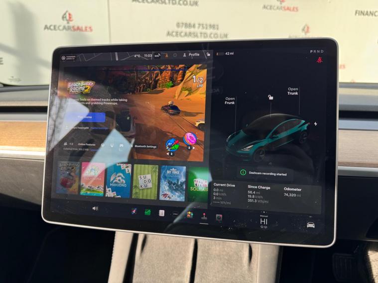 FINANCE & PCP AVAILABLE, COMPLEMENTARY WARRANTY INCLUDED, GOOD CONDITION, WE TAKE PART EXCHANGE! Tesla Model 3 (Dual Motor) Long Range Auto 4WDE 4dr. HPI Clear, 1 Owner From New, 2 Key Cards, 10 Months MOT, Range of Upto 330 Miles, Fixed Panoramic Glass Roof, Keyless Entry With App Control, Keyless Start, Adaptive Cruise Control, Speed Limit Function, 4 Wheel Drive, Automatic Recording Dashcam, Around View Cameras, Reverse Camera With Parking Sensors, Adaptive Steering, Automatic Emergency Braking, Autopilot Function, Blind Spot Assist With Blindspot Camera, Collision Alert Assist, Collision Avoidance, Lane Departure Warning With Autosteer, Emergency Lane Departure Avoidance, Front Cross Traffic Camera, Rear Cross Traffic Camera, Obstace Aware Accleration, Traffic Sign Recognition, Accleration Response Setting Chill/Standard, Steering Mode Light/Standard/Heavy, Stopping Mode Creep/Roll/Hold, Power Steering - Speed Sensitive, Traction Control, Electronic Stability Control, Electric Windows, Electric Folding/Adjusting Mirrors, Electric Steering Column, TESLA Lights Show, Automatic Headlight Control, LED Headlights, Daytime Running Lights - LED, Front Fog Lights, Automatic Rain Sensing Wipers, 12-Way Power Adjustable Front Heated Seats, Rear Heated Seats, Automatic Dual Zone Climate Control, Air Conditioning, Front And Rear Screen Demister, Custom Driver Profiles, 15inch Colour Touchscreen, Theatre With Disney/NETFLIX/Twitch/YouTube, Arcade Games To Play, Toybox With Screen Effects/Sketchpad/TRAX (Beat Maker), Premium Audio - 14 Speakers - 1 Subwoofer - 2 Amps and Immersive Sound, On Board Trip Computer With Charge/Battery Information, Mobile Phone App Interface, Internet Connection, Navigation, Traffic Information, Bluetooth, Radio, DAB, USB, Telephone Connection, Voice Control, Multifunctional Control Steering, Full Leather Design Seats, Wooden Design Interior Trims, Tinted Glass Roof with Ultraviolet and Infrared Protection, 18inch Alloy Wheels.ALL VEHICLES ARE FULLY INSPECTED PRIOR TO SALE. We include a COMPLEMENTARY WARRANTY on all our vehicles..