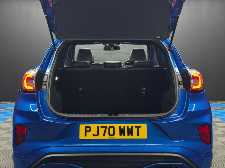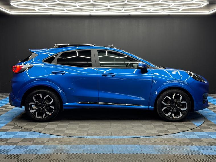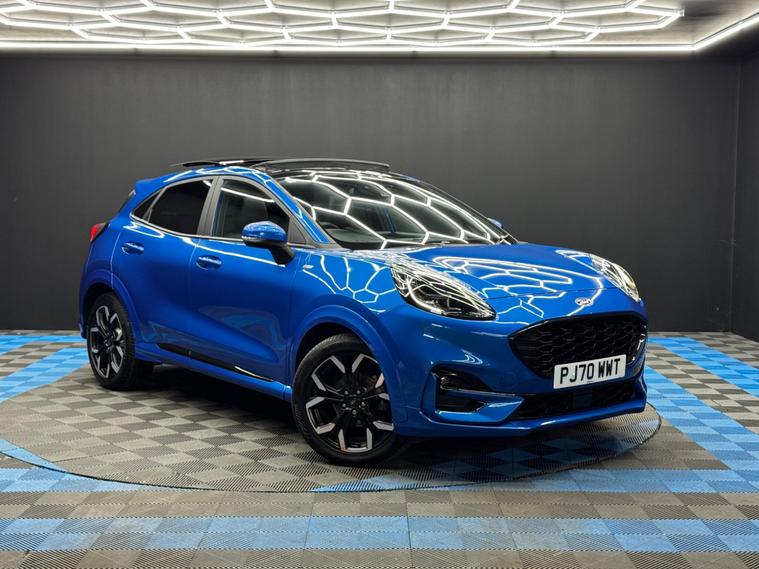 Here at Motor Gurus we are delighted to offer a Ford Puma 1.0T EcoBoost MHEV ST-Line X. This vehicle is in very good condition when taking into consideration the vehicle's age and mileage. This specific vehicle is finished in a GLOSS BLUE and is contrasted by a BLACK LEATHER/CLOTH interior. This vehicle comes included with: REAR PARKING SENSORS, PRIVACY GLASS, SLIDING GLASS PANORAMIC ROOF, FRONT HEATED SEATS, PERFORATED GRIPPED LEATHER STEERING WHEEL, CRUISE CONTROL, AUTOMATIC HEADLIGHTS, DIGITAL COCKPIT, TWIN CUPHOLDERS, DRIVING MODES, CLIMATE CONTROL, SAT NAVIGATION, DAB RADIO, BLUETOOTH AUDIO, TELEPHONE CONNECTIVITY, APPLE CARPLAY, WIRELESS PHONE CHARGING, COLLISION AVOIDANCE, LANE KEEPING ASSIST, TRAFFIC SIGN ASSIST, TYRE PRESSURE MONITORING AND MUCH MORE! Our Ford Puma 1.0T EcoBoost MHEV ST-Line X has come to us with 2 KEYS and is a 1 FORMER KEEPER (2 owners) FROM NEW! We will also provide a 12 MONTH MOT and a FRESH OIL SERVICE before it leaves our premises (OTR)..