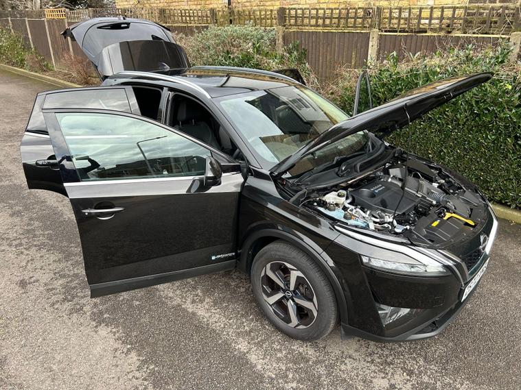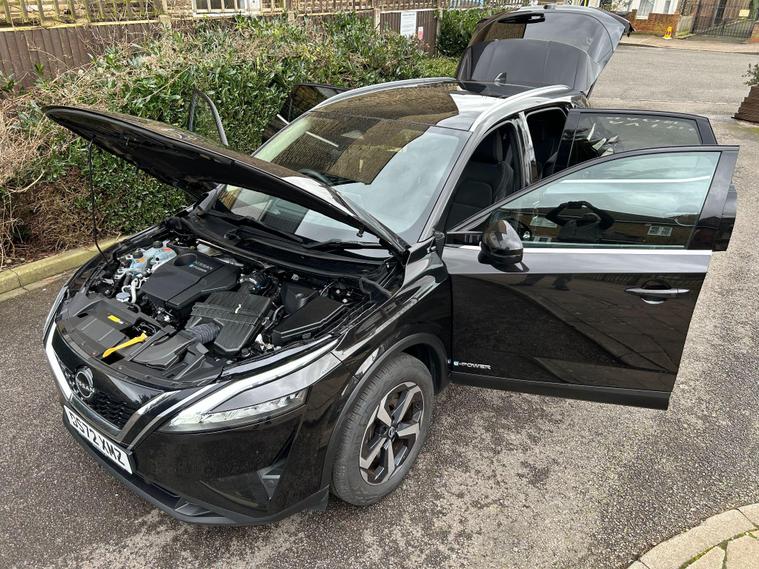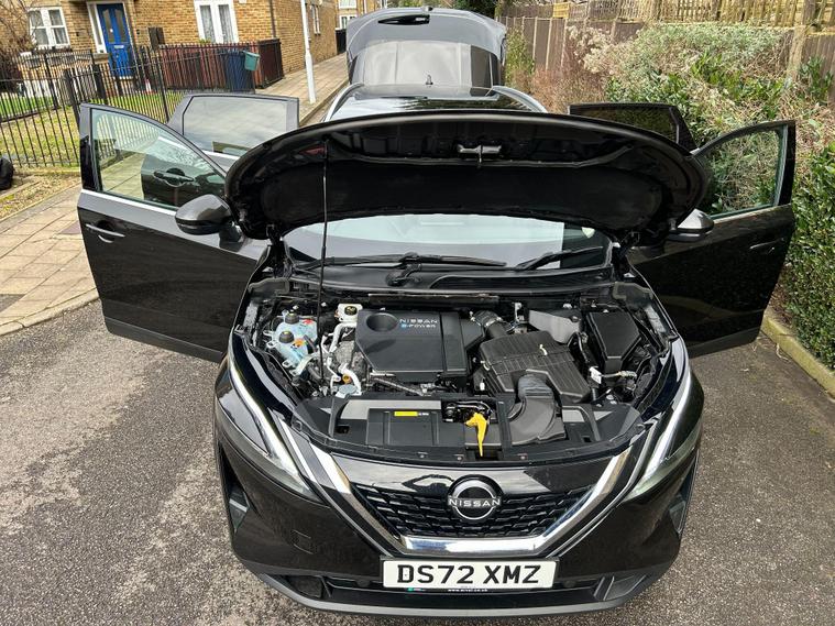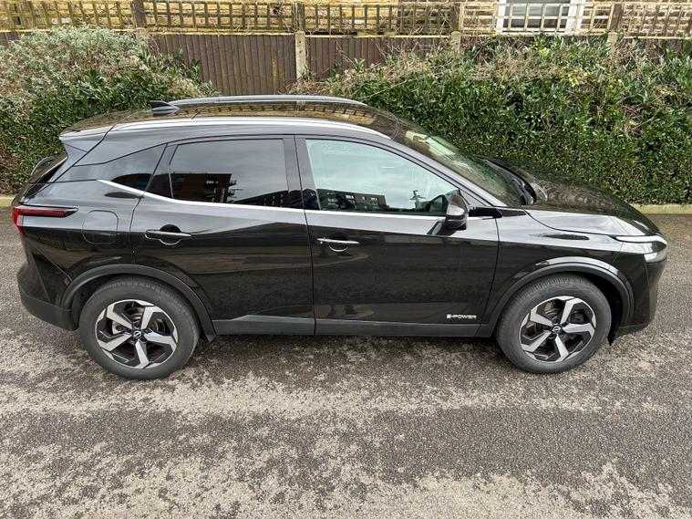 This 2023 Nissan Qashqai h e-POWER Acenta Premium is presented in excellent condition, having been owned by only one careful owner and boasting a full dealership service history. This Euro 6 compliant model features a responsive 1.5 litre petrol hybrid engine, offering an impressive 54 miles per gallon. Inside, you'll find a user friendly cabin equipped with Bluetooth with Audio Streaming and wired Android Auto, ensuring seamless connectivity. For added safety and convenience, this Qashqai includes Blind Spot Warning, a Rear View Camera for easier parking, and Intelligent Auto Headlights that adjust automatically.Experience the efficiency and performance of this Qashqai, which achieves 0-62mph in just 7.9 seconds, demonstrating its capability. The low CO2 emissions highlight its environmentally conscious design, making it a more responsible choice. Furthermore, the generous boot space provides ample room for all your luggage or shopping needs, setting it apart from many other vehicles in its class..