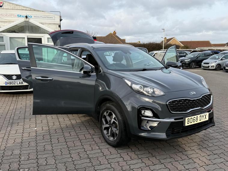 ONE FORMER KEEPER, FULL SERVICE HISTORY, 6 MONTHS WARRANTY, MOT TILL 17/10/2026, Experian clear, 2 keys, just serviced, all prev MOT’s avail, we are located at 1-9 WALTON ROAD FRINTON ON SEA ESSEX CO13 0AA, PART EXCHANGE WELCOME, FINANCE AVAILABLE, With an MOT valid until October 2026 and a full service history, this 2018 Kia Sportage GDi 2 offers excellent peace of mind. This Euro 6 compliant 1.6 litre petrol model comes with a Experian clear vehicle history check and a 6 month warranty for added reassurance. Inside, you'll find a range of convenient features designed to enhance your driving experience, including automatic headlight control, Bluetooth connectivity with voice recognition and music streaming, and dual automatic air conditioning for personalised comfort.The Sportage also boasts a reversing camera system and rear parking sensors, making manoeuvring in tight spaces simpler. This particular model benefits from a low insurance group, which can help to keep your running costs down. Furthermore, you'll appreciate the generous boot space, providing ample room for shopping, luggage, or sports equipment. These highlights demonstrate how this Kia Sportage is a well maintained and practical choice..