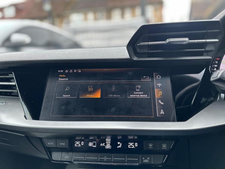 This 2021 Audi A3 TFSI Sport offers an exceptional blend of style and efficiency, making it a standout choice. Powered by a 1.0 litre Euro 6 compliant petrol engine, this Sport trim model delivers a smooth driving experience. It comes equipped with striking LED headlights and daytime running lights, complemented by LED rear lights, ensuring excellent visibility. Inside, you'll appreciate the convenience of dual zone electronic climate control and the ease of parking with rear parking sensors. Connectivity is seamless thanks to the Bluetooth interface and the Audi Smartphone Interface, which includes Apple CarPlay for effortless integration of your mobile device.Experience impressive fuel economy with this A3, achieving a highlight of 54 miles per gallon, which indicates it performs better than many similar vehicles. Its low CO2 emissions also set it apart, contributing to a more environmentally conscious drive. For those needing practicality, the generous boot space provides ample room for luggage or shopping. Performance is also a strong point, with an acceleration of 0 to 62 miles per hour in just 10.6 seconds, demonstrating its capable acceleration compared to other vehicles in its class..