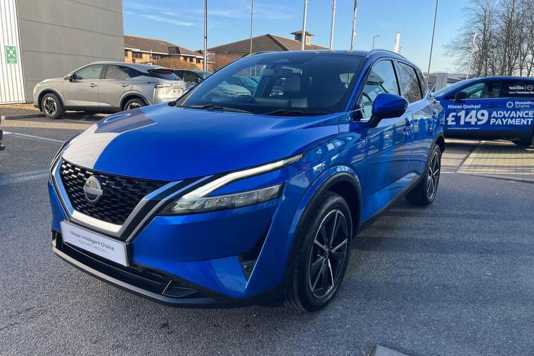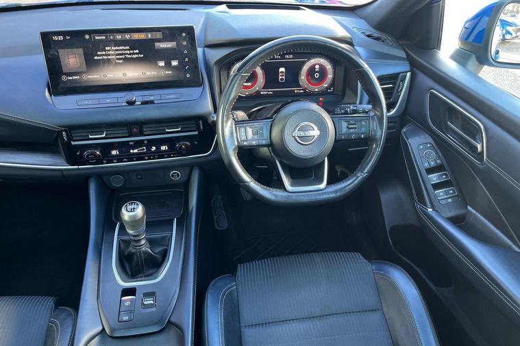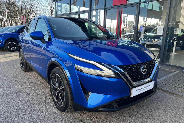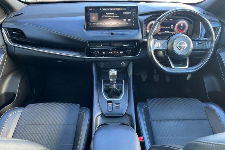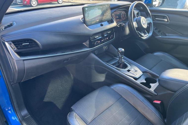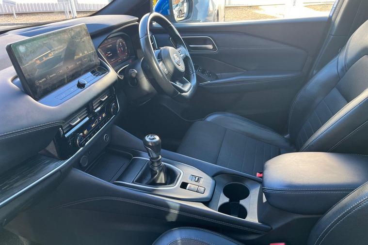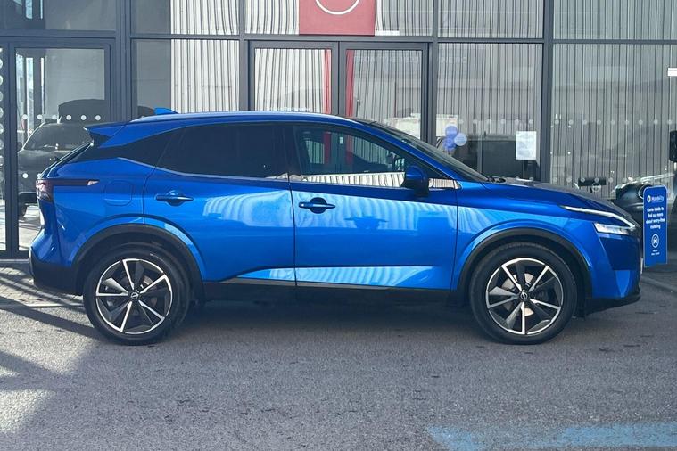 This 2022 Nissan Qashqai DIG-T Tekna is a Nissan manufacturer approved vehicle, offering peace of mind with its proven history. Powered by an efficient 1.3L Petrol Hybrid engine and meeting Euro 6 emissions standards, this Tekna trim model combines modern technology with practicality. It comes equipped with an Advanced Windscreen Head Up Display for convenient information access, and parking is made simple with a Rear View Camera and Front and Rear Parking Sensors. Safety is enhanced by Blind Spot Warning, and the LED Headlights with Adaptive Driving Beam ensure excellent visibility.The Qashqai DIG-T Tekna stands out with its generous boot space, providing ample room for all your needs. Furthermore, its low insurance group rating indicates that running costs are kept to a minimum, making it a more economical choice compared to many other vehicles in its class. These highlights demonstrate the thoughtful design and value offered by this particular Nissan Qashqai..