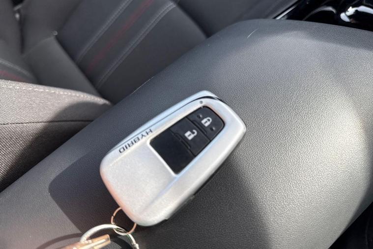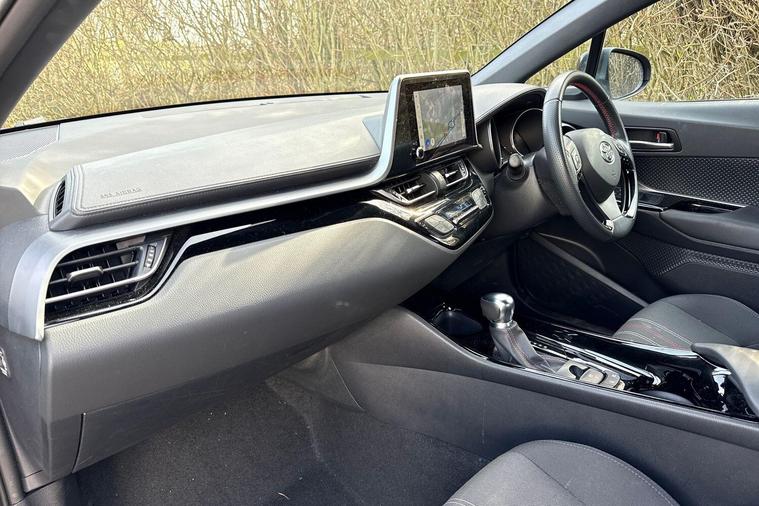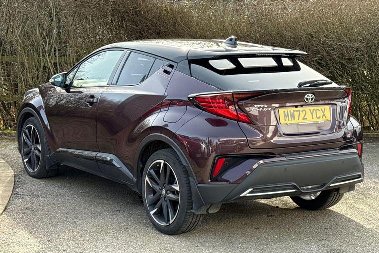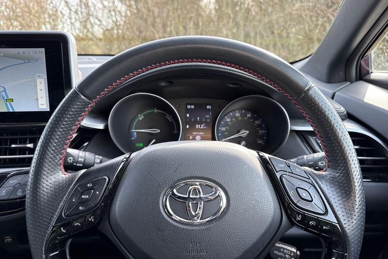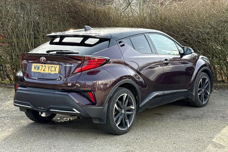 This 2023 Toyota C-HR VVT-h GR SPORT is a superb example, having had only one owner since new. This stylish hatchback features a 1.8 litre petrol hybrid engine, meeting Euro 6 emissions standards. It comes equipped with automatic headlights, adaptive cruise control for effortless long journeys, and a comprehensive tech pack that includes blind spot assistance, keyless entry, and front and rear parking sensors. A reversing camera further aids manoeuvrability, and the smart entry and push button start system adds a touch of modern convenience.This particular GR SPORT model offers excellent value, highlighted by its impressive fuel economy of 58 miles per gallon. Its low insurance group rating means more affordable ownership, and its low CO2 emissions demonstrate its efficiency. These factors combined indicate that this Toyota C-HR is a more economical and cost effective choice compared to many other vehicles in its class..