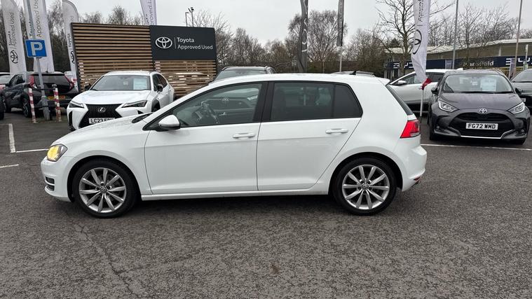 With only one owner and exceptionally low mileage for its age, this 2014 Volkswagen Golf TSI GT presents a superb ownership proposition. This Euro 6 compliant 1.4 litre petrol model boasts a full service history, with its last service completed on 23 January 2026 at 46026 miles. Notable features include dusk sensing headlights with automatic activation, adaptive cruise control for effortless long journeys, and front parking sensors to aid manoeuvrability. Inside, you'll find manual air conditioning to keep you comfortable and Bluetooth connectivity for seamless phone integration.This Golf TSI GT offers impressive performance and efficiency, achieving 0-62mph in just 8.4 seconds, demonstrating its responsive acceleration. Its fuel economy is a standout feature, reaching an excellent 60 mpg, which is better than many comparable vehicles. Furthermore, its low CO2 emissions contribute to a more environmentally friendly drive. Practicality is also a strong point, with generous boot space making it ideal for shopping trips or holidays, further enhancing its appeal over other cars in its class. A 3 month warranty is included for your peace of mind..
