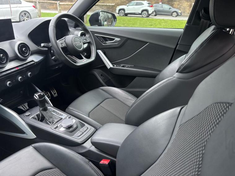 WE ARE PLEASED TO OFFER THIS HIGHLY DESIRABLE HIGH SPECIFICATION MAIN DEALER MAINTAINED RARE LOW MILEAGE AUTOMATIC PETROL AUDI Q2 1.5 TFSi BLACK EDITION S TRONIC FIVE DOOR EURO SIX + FINISHED IN THE BEST COLOUR OF MYTHOS BLACK METALLIC AND IS COMPLEMENTED WITH A BLACK HALF LEATHER AND ROCK GREY CLOTH UPHOLSTERY + ONLY A MERE 19, 220 MILES HAS BEEN COVERED IN TOTAL BY TWO OWNERS + LAST OWNER SINCE AUGUST 2023 + FULL AUDI MAIN DEALER SERVICE HISTORY + THE SERVICES HAVE BEEN CARRIED OUT AT 7248 MILES AND 18743 MILES + THE MOT IS TILL THE 27TH OF JANUARY 2027 + EXCEPTIONAL CONDITION THROUGHOUT AND DRIVES SUPERB + 150 BHP + FULL BLACK EDITION SPECIFICATION WHICH INCLUDES VIRTUAL DASHBOARD / 19'' GLOSS BLACK DIAMOND CUT MULTI SPOKE ALLOY WHEELS / DAB TUNER / MEDIA PACK / AUDI SMARTPHONE INTERFACE / BLACK EXTERIOR STYLING PACK / CRUISE CONTROL / MULTI FUNCTION FLAT BOTTOMED LEATHER SPORTS STEERING WHEEL / TINTED GLASS / FULL ELECTRIC PACK WITH POWER FOLD DOOR MIRRORS / REAR PARKING DISTANCE CONTROL PLUS MUCH MORE + HANDBOOK PACK + DIGITAL PRINTOUT SERVICE HISTORY + 2 X KEYS + ANY TRIAL OR INSPECTION IS WELCOMED + HPI CLEAR WITH CERTIFICATE + SIX MONTHS NATIONWIDE WARRANTY IS INCLUDED + VIEWING IS ESSENTIAL TO APPRECIATE THIS TRULY CHERISHED EXAMPLE AND REPRESENTS OUTSTANDING VALUE FOR MONEY ON COST NEW PRICE. We have been established in Baildon for over 20 years. All our vehicles are fully inspected, prepared and valeted. We are finance specialists. Part exchange is welcome. All major credit and debits accepted. Open 7 days. Our postcode is BD177EX..