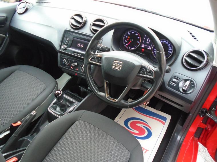 SEAT IBIZA 1.0 VISTA 5 DOOR EURO 6.IDEAL FIRST CAR GROUP 8E INSURANCE IN BRIGHT RED WITH CONTRASTING GREY AND BLACK CLOTH INTERIOR.VERY ECONOMICAL £35 A YEAR ROAD TAX AND 50 dealer's website WITH BLUETOOTH CONNECTIVITY, AIR CON, CRUISE CONTROL, USB+AUX, REAR PARKING SENSORS, 16 INCH ALLOY WHEELS AND 2 KEYS .MOT UNTIL FEBRUARY 2027 AND FRESH SERVICE.12 MONTHS FREE AA BREAKDOWN COVER AND 18 MONTHS WARRANTY INCLUDED IN PRICE.FINANCE AVAILABLE P/X WELCOME.