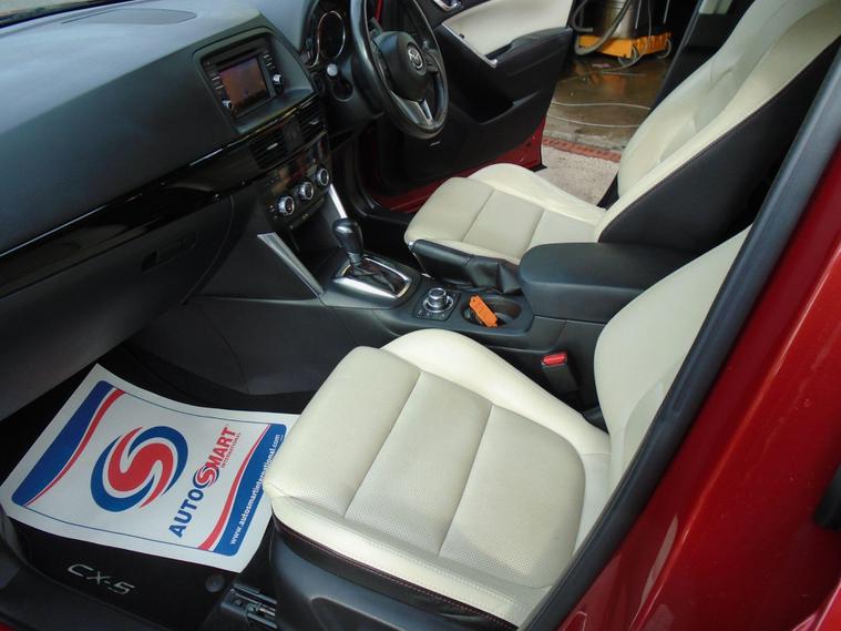 MAZDA CX-5 2.2 SKYACTIV-D SPORT NAV AUTOMATIC 4WD EURO 6.METALLIC WINE RED WITH FULL CREAM LEATHER INTERIOR LOOKS AND DRIVES AMAZING WITH LOW LOW MILES AND FULL MAZDA SERVICE HISTORY.FANTASTIC SPEC WITH SAT NAV, BLUETOOTH CONNECTIVITY, HEATED SEATS, REAR CAMERA, FRONT AND REAR PARKING SENSORS, AIR CON, CRUISE CONTROL, USB AND 19 INCH ALLOY WHEELS WITH 2 KEYS.VERY DESIRABLE AUTOMATIC SUV 4X4.MOT UNTIL FEBRUARY 2027 AND FSH WITH MAZDA.12 MONTHS FREE AA BREAKDOWN COVER AND 18 MONTNHS WARRANTY INCLUDED IN PRICE.FINANCE AVAILABLE P/X WELCOME..