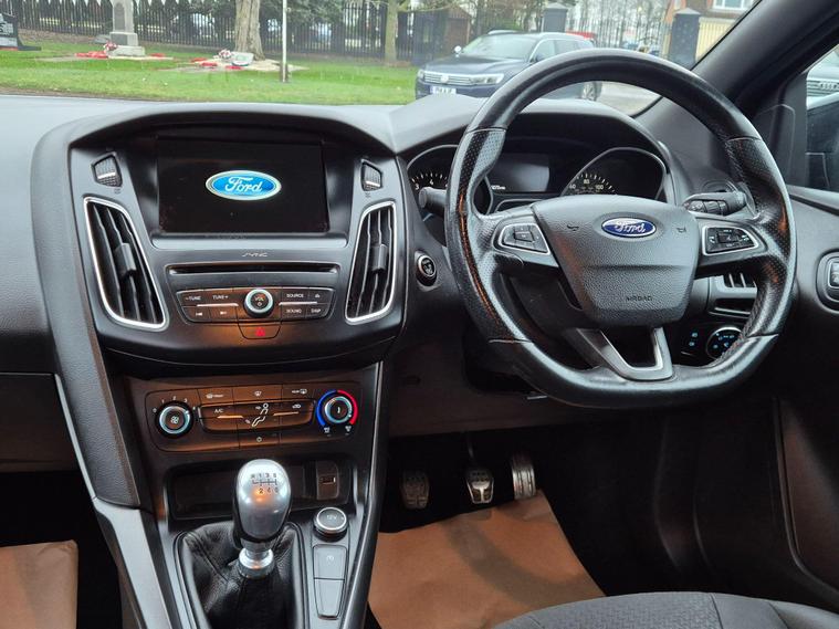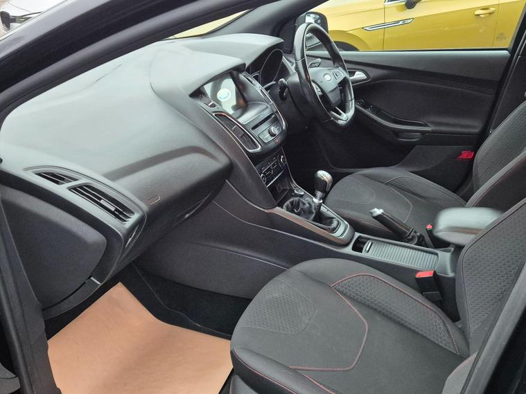 This 2017 Ford Focus T ST-Line is presented with a clear vehicle history check, offering you peace of mind. This model features a 1.0 litre petrol engine and meets Euro 6 emissions standards. Inside, you'll find the 8 inch TFT touchscreen with Ford SYNC2, which includes Bluetooth connectivity for your convenience.This Focus ST-Line is designed to impress with its impressive fuel economy, achieving up to 60 miles per gallon, which is better than many similar vehicles. It also boasts a large boot space, offering ample room for your shopping or luggage, and its low CO2 emissions further highlight its efficiency and environmental consideration compared to other cars in its class. Previously serviced at 9496 in 2018, 21169 in 2019, 31701 in 2020, 37533 in 2021, 48070 in 2022, 59276 in 2023, 69935 in 2024, 81190 in 2024, 94640 in 2026 all at Ford dealership..