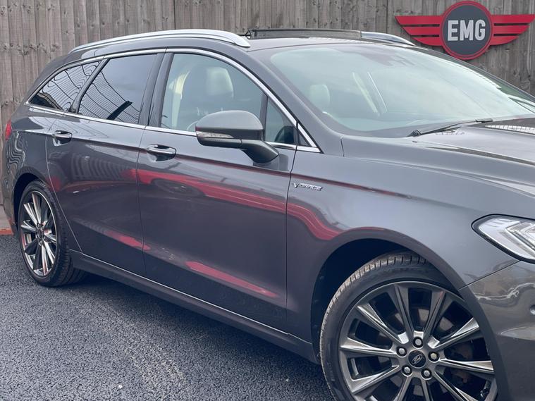 2017 Ford Mondeo 2.0 TDCi Vignale Powershift Euro 6 (s/s) 5drThis 2017 Ford Mondeo TDCi Vignale presents a superb ownership history, having been cared for by only one former owner. Under the bonnet, you'll find a capable 2.0 litre diesel engine that meets Euro 6 emissions standards, ensuring efficiency and compliance. This particular Vignale trim level is equipped with a host of desirable features. The Mondeo TDCi Vignale stands out with its premium Vignale trim, offering a refined driving experience. Key Features & Specification:✔ Panoramic Glass Roof✔ Reverse Camera✔ Front & Rear Parking Sensors✔ Electric Tailgate✔ Keyless Start Button✔ Auto Lights & Wipers✔ Lane Assist✔ Multi Media Touch Screen✔ Bluetooth, DAB Radio, USB, SD Card✔ Heated Seats✔ Electric & Memory Seats✔ Cruise Control✔ Blind Spot Assist✔ Door Mirrors-Electric-Heated-Folding✔ Hill Start Assist✔ Heated Windscreen✔ Steering Mounted ControlsVehicle Details:• Registered: 2017• Owners: 1 Former Keeper• Keys: X2• Service History: Service History (Recently Serviced)• ULEZ Compliant• Gearbox Service 2024• MOT: Long MOT (Minimum 6 Months)• Warranty: Complimentary 6-Month Warranty• HPI Clear: Certificate Provided on Request• Breakdown Cover: 12 Months AA CoverWhy Buy From Us?? Competitive Finance Rates – Affordable finance options available to suit your budget.? Viewing by Appointment Only – Schedule a test drive with our expert sales team.? Nationwide Delivery Available – Hassle-free delivery to your doorstep.? Flexible Payment Options – Debit & Credit Cards Accepted.? Part Exchange Welcome – Competitive trade-in valuations offered.? Open 7 Days a Week – Convenient hours to suit your schedule.? Call us today on 01616232565 to request a personalised video or arrange a viewing.? Visit dealer's website to explore our full range of stock.While we make every effort to ensure accuracy, please confirm all details with our sales team before visiting..