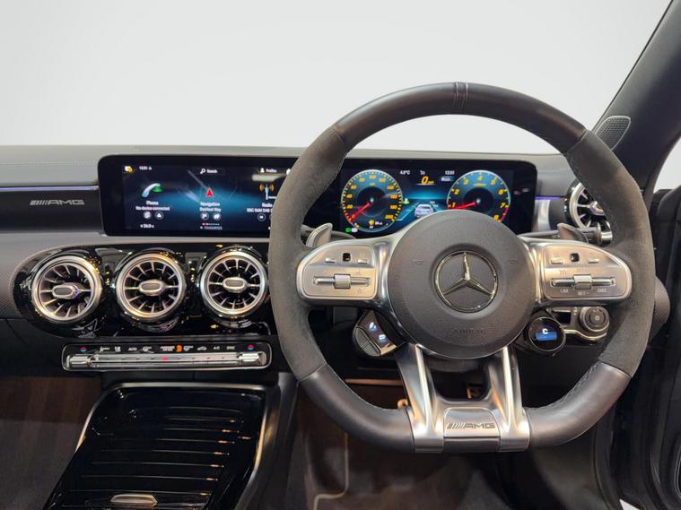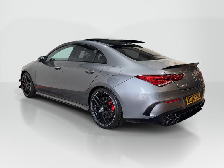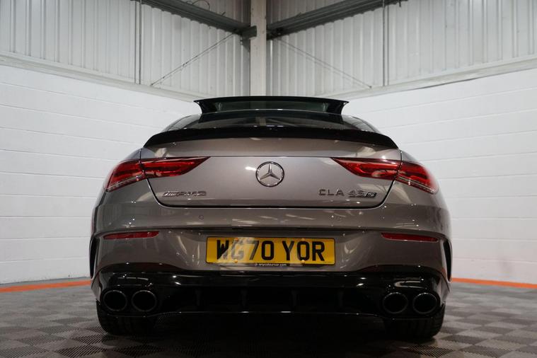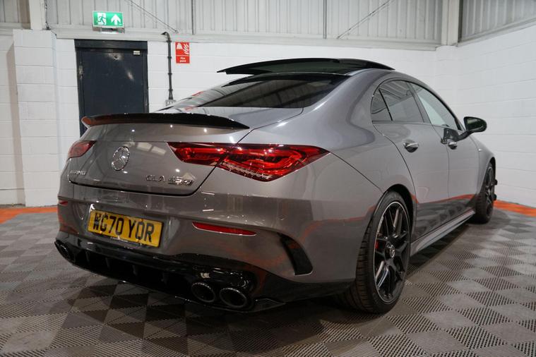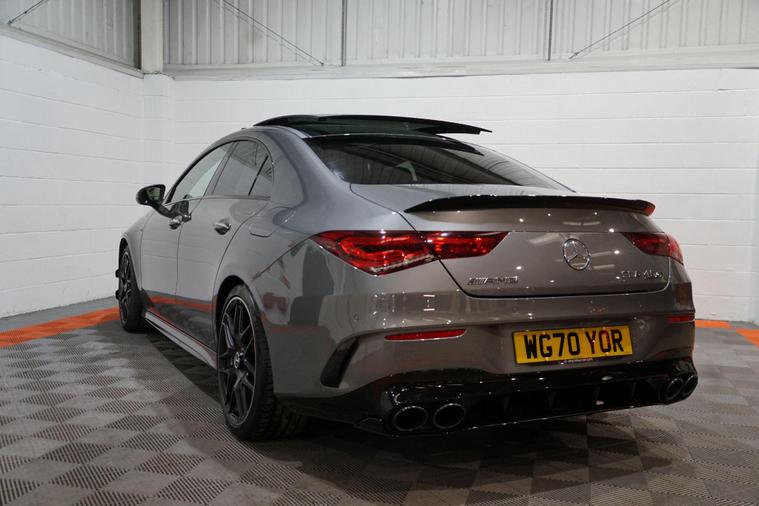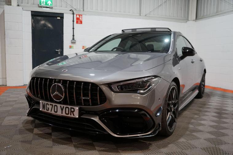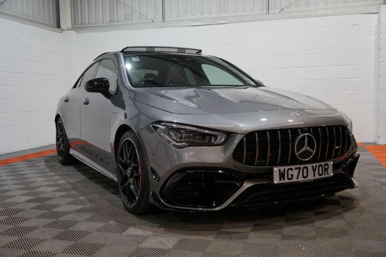 This Mercedes-Benz CLA 45 AMG S Plus Coupe 8G-DCT 4MATIC+ is an exceptional high-performance four-door coupe, combining aggressive AMG styling with everyday usability and cutting-edge technology. Finished in striking Mountain Grey metallic, this example presents a rare and highly desirable specification, making it both valuable and sought after.Powered by the hand-built 2.0-litre AMG turbocharged engine and paired with the advanced 8G-DCT automatic gearbox, the CLA 45 S delivers explosive performance with razor-sharp gear changes. The 4MATIC+ all-wheel-drive system provides outstanding grip and dynamic handling, allowing the car to deploy its power confidently in all conditions while remaining composed and engaging.This example benefits from a full service history, offering reassurance of meticulous maintenance and careful ownership.When new, this CLA 45 AMG S Plus was specified with the following features:* Metallic Paint £595 – Premium finish enhancing depth of colour and long-term desirability* Mountain Grey Metallic – A sophisticated and sporty colour choice that perfectly complements AMG styling* Driving Assistance Package – Advanced driver support systems designed to enhance safety and reduce fatigue on longer journeys* Panoramic Sunroof – Floods the cabin with natural light and enhances the sense of space* Aluminium AMG Design Trim in Black/Silver – Adds a performance-focused and premium interior finish* Reversing Camera – Improves visibility and confidence when parking* Ambient Lighting – Creates a modern, customisable interior atmosphere* Apple CarPlay – Seamless smartphone integration for navigation, calls, and mediaCombining supercar-rivalling performance with luxury, technology, and everyday practicality, this CLA 45 AMG S Plus represents a rare opportunity to own one of the most powerful and desirable compact performance saloons on the market.All part exchange welcome, with fair and instant valuations offered.If you are located further afield, we can provide a detailed walk-around video and arrange nationwide delivery at very compe.