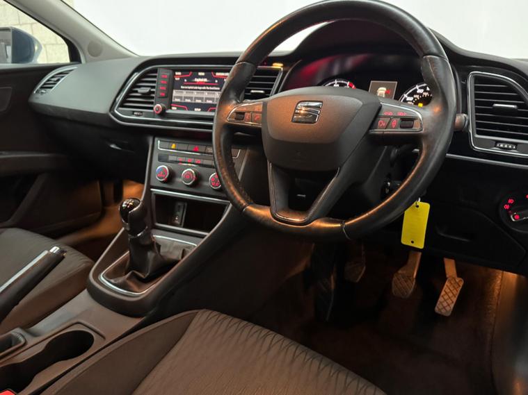 Bluebell Motorhouse is proud to present to you a fantastic example of this SEAT Leon 1.2 TSI SE. This vehicle offers an incredible amount of options from factory, some of which include Satellite Navigation, Electric front and rear windows, Electric mirrors, Air Conditioning, Cruise control, aux, bluetooth, DAB and much more! This particular vehicle also impresses with an extensive service history ( 5 services in total ). The current MOT expires on 10/03/2026. The car is finished in the Manufacturer colour of Sapphire Blue with cloth seats and 16 inch alloy wheels. This car is in excellent condition throughout, maybe the odd light mark and chips around the car but all fitting with age and mileage. It starts and drives very well. Any inspection is welcome. 3 Months In House Warranty included with basic AA 12 months Breakdown Cover which can be extended to the UK's only Trading Standards approved warranty, administered by The Motoring Organisation-subject to terms and conditions, with more info directly on our website under the warranty section. **MOT AND SERVICE WILL BE PROVIDED** Low interest finance available.