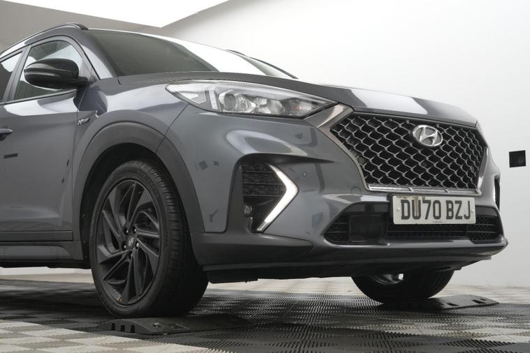 Just arrived is this fabulous car in Micron Grey Metallic and impressive to drive, a 2020 Hyundai TUCSON T-GDi N Line Automatic & boasts a full service history, with its last service completed on 2025-12-19 at 71555 miles, and benefits from an MOT valid until October 2026, alongside a 6 month warranty for your peace of mind. This Euro 6 compliant 1.6 litre petrol model offers a compelling blend of style and practicality, featuring N Line trim enhancements. Inside, you'll find comfort with heated front seats, while the automatic headlights with a dusk sensor ensure optimal visibility. Connectivity is seamless with Bluetooth, and smartphone integration is made easy with both Apple CarPlay and Android Auto. Satnav DAB media system with reverse camera. Bespoke N-Line Alcantara/Leather interior with red piping & stitching. Tow bar fitted with electrics. A fabulous smooth & responsive car to drive. Shropshire owned & serviced with all handbooks. 2 x keys. 6 Months Warrantywise Platinum Warranty. 12 Months AA Breakdown Membership included. AA Driveaway 5 Day Insurance available - Only £44.99 NEED FINANCE? No Problem - SAF Registered. Hire purchase rates from 9.9% APR & PCP available, please ask. Simply click 'Apply for finance' on our website dealer's website We are a FCA registered dealership.The TUCSON T-GDi N Line stands out with its impressive acceleration, reaching 0-62mph in just 8.9 seconds, demonstrating its responsive performance. This vehicle also offers a generous boot space, making it ideal for all your carrying needs. Furthermore, its placement in a low insurance group indicates that running costs are kept to a minimum, making it a more economical choice compared to similar vehicles..