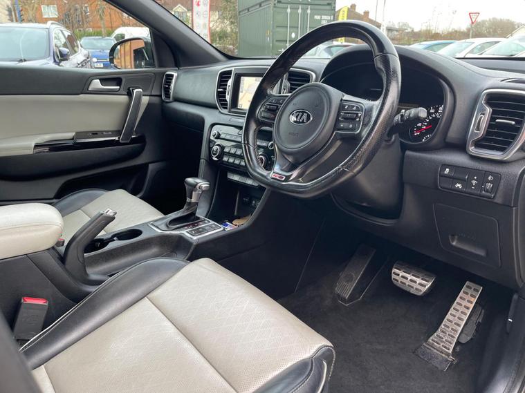 This 2017 Kia Sportage T-GDi GT-Line boasts exceptionally low mileage for its age, having covered just 43, 436 miles. This four wheel drive model is powered by an efficient 1.6 litre petrol engine and meets Euro 6 emissions standards. Inside, you'll find a comfortable and convenient cabin featuring dual automatic air conditioning with climate control, and heated front and outer rear seats for those colder journeys. Stay connected and entertained with Apple CarPlay and Android Auto integration, and enjoy the ease of keyless entry with the engine start-stop button.The Sportage GT-Line offers a compelling driving experience, with a brisk 0-60mph acceleration time of 8.8 seconds, demonstrating its performance capabilities. Its large boot space provides ample room for shopping or luggage, making it a practical choice for families and individuals alike. Furthermore, this model falls into a low insurance group, which can help to reduce your running costs compared to similar vehicles. Rear parking sensors with parking assistance are also included, adding an extra layer of confidence when manoeuvring..