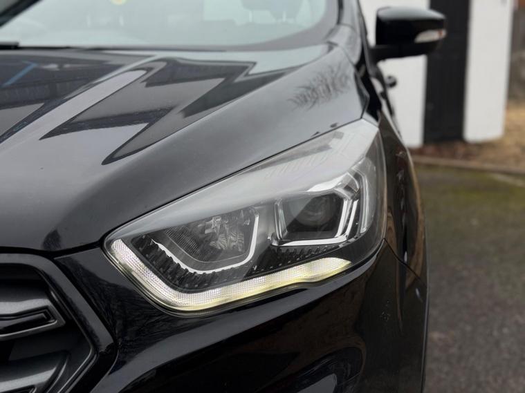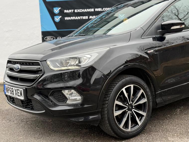 This 2018 Ford Kuga T ST-Line offers a superb blend of style and technology, making it a compelling choice for any driver. Powered by an efficient 1.5 litre petrol engine and meeting Euro 6 emissions standards, this model is designed for modern driving. Inside, you'll find the Ford SYNC 3 DAB Navigation System, complete with Android Auto and Apple CarPlay for seamless smartphone integration, alongside Bluetooth connectivity. Comfort is assured with DEATC Dual-Zone Electronic Automatic Temperature Control, allowing both driver and passenger to set their preferred climate.The Kuga ST-Line also boasts impressive parking capabilities. With Rear Parking Sensors and Enhanced Active Park Assist, which includes both front and rear sensors, manoeuvring into tight spaces becomes significantly easier. These features, combined with the advanced infotainment and climate control systems, demonstrate a higher level of specification and driver convenience compared to many other vehicles in its class. This Ford Kuga is ready to provide a comfortable and connected driving experience..