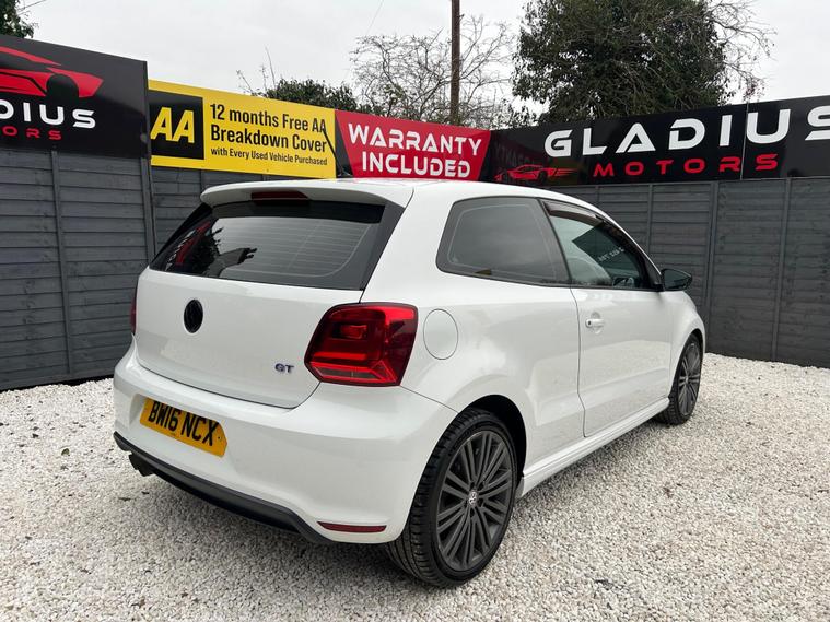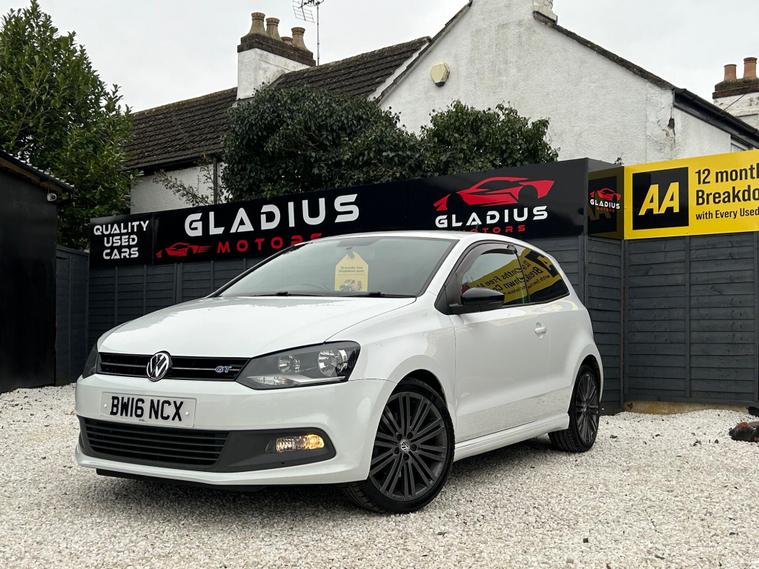 VIEWING BY APPOINTMENT ONLY – FULLY PREPPED AND READY TO DRIVE AWAY TODAY ✅This 2016 Volkswagen Polo 1.4 TSI BlueMotion Tech ACT BlueGT finished in white is a fantastic example of a hatchback that blends sporty performance with everyday practicality. It’s one of those cars that looks sharp, feels lively, and makes every drive enjoyable — exactly why the BlueGT models are so sought after.It comes with partial service history, and we’ve just carried out a fresh service ourselves. It will also be supplied with a brand-new 12-month MOT before handover, so it’s fully prepared and ready for its next owner from day one.Out on the road, it really shines. The 1.4 TSI ACT engine delivers strong performance while remaining smooth and efficient, giving you the best of both worlds — fun when you want it and economy when you need it. It’s responsive, refined and genuinely enjoyable to drive, yet still practical for everyday use. Even better, it costs just £20 a year in road tax, which is rare for a car with this level of performance.Visually, it stands out with black 17-inch alloy wheels and tinted windows, giving it a sporty, premium look. Inside, it’s well equipped with touchscreen infotainment, Bluetooth, AUX connectivity, and cruise control, making it comfortable and convenient for daily driving or longer journeys.Please note, this is a used car — not a new one. You should expect some light age-related marks consistent with age and mileage, nothing major or unexpected. We describe all our cars in good faith, so if there’s anything important you’d like to confirm, just ask and we’ll be happy to help.Supplied with a 3-month nationwide warranty and 12-month AA breakdown cover, and offered by a 5-star rated AA Approved Dealer, you can buy with confidence.Call 01452235712 to arrange a viewing — serious buyers only, please..
