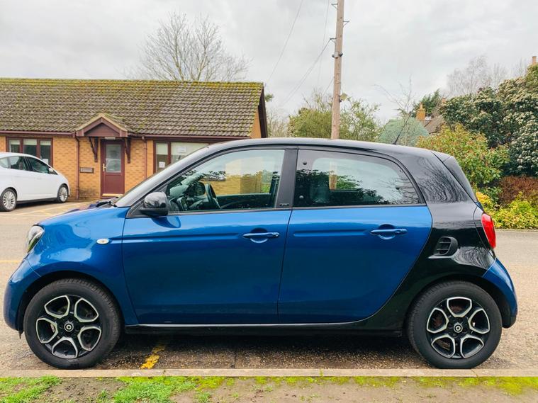 MOT 22/08/2026 , FULL SERVICE HISTORY, LAST SERVICE@52K , GOOD SERVICE HISTORY, MOT This 2017 , Smart forfour Prime offers exceptional value with a clear vehicle history check and only two previous owners. Powered by an efficient 1.0L Euro 6 petrol engine, this model boasts a Premium Equipment Line which includes rear parking assistance and Bluetooth connectivity. Inside, you'll find the Cool and Audio Package featuring automatic climate control and heated seats for both the driver and front passenger, ensuring comfort in all conditions. The fixed panoramic roof with sun protection adds a sense of spaciousness to the cabin. This Smart forfour Prime stands out with its impressive fuel economy, achieving a remarkable 67 miles per gallon, which indicates it is more economical than many other vehicles in its class. Furthermore, its low CO2 emissions and low insurance group highlight its cost effectiveness for everyday driving. This combination of efficiency, comfort, and affordability makes it a sensible choice for those seeking a practical and well equipped city car..