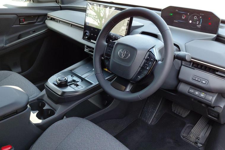 This 2025 Toyota bZ4X Design is a Toyota manufacturer approved, one owner electric vehicle with a full dealership service history and 32 months remaining on its warranty. This impressive electric SUV boasts a 73 kWh battery offering a maximum range of 352 miles, making it ideal for both daily commutes and longer journeys. It comes equipped with a host of convenient features, including Bluetooth connectivity, a towing hitch for added versatility, and Intelligent Clearance Sonar with front and rear parking sensors to assist with manoeuvring. Inside, you'll find a wireless mobile phone charger and a large 14 inch Toyota Smart Connect+ multimedia system that supports wireless Apple CarPlay and Connect Cloud Navigation.The highlights of this Toyota bZ4X Design demonstrate its superior capabilities compared to other vehicles in its class. Its exceptional 352 mile maximum range at new means you can travel further on a single charge, reducing the need for frequent stops. Furthermore, a full charge at home using a 7kW charger takes approximately 10 hours and 30 minutes, providing a convenient overnight charging solution. The combination of its extensive range, advanced technology, and manufacturer approval ensures a confident and enjoyable driving experience..
