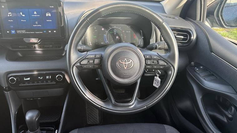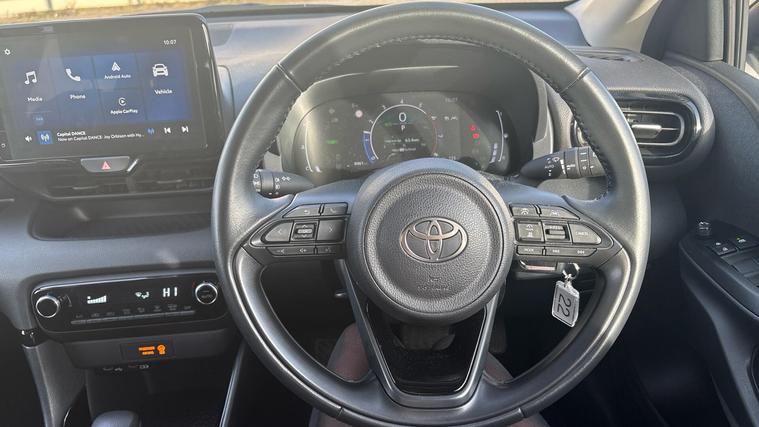 This 2024 Toyota Yaris VVT-h Design is a Toyota manufacturer approved vehicle, boasting a full service history and a 12 month warranty for your peace of mind. This one owner, Euro 6 compliant model features a responsive 1.5L petrol hybrid engine and comes equipped with a reversing camera, automatic headlights, automatic air conditioning, and Bluetooth connectivity for your convenience. Adaptive Cruise Control is also included, making longer journeys more relaxed.The Yaris VVT-h Design stands out with its impressive fuel economy, achieving an outstanding 69 miles per gallon, which is significantly better than many other vehicles in its class. Furthermore, its low CO2 emissions highlight its efficiency and environmental consideration. This well maintained and feature rich Yaris offers a compelling package for any driver..