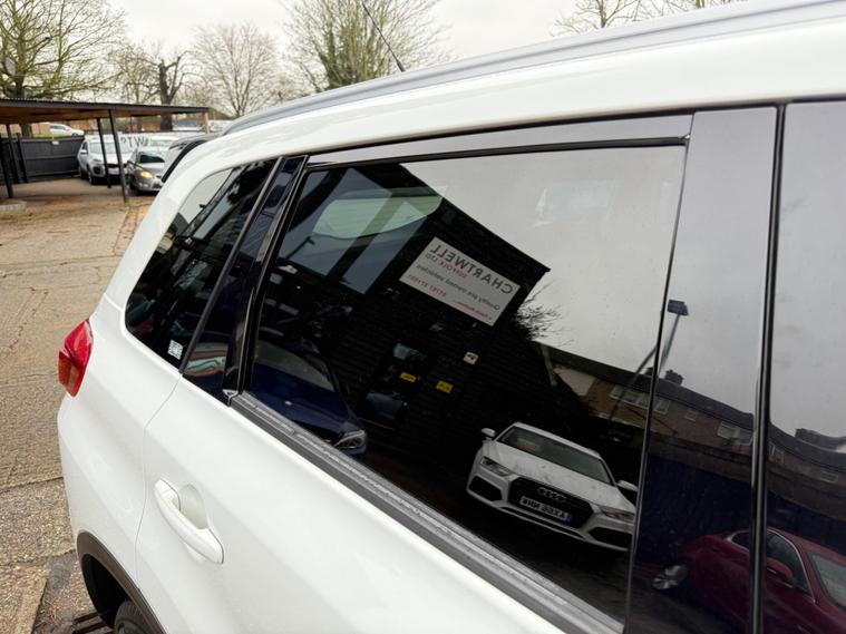 Chartwell's are pleased to offer this stunning Suzuki Vitara Kuro for sale. ULEZ Compliant. Only 2 previous owner from new. The car comes complete with a full service history (Suzuki main agent from 2017-2024) and accompanied by a fully stamped service book as shown in our photos. The last service was on 10/02/2026 at 90, 888 miles. Chain driven with no cambelt change to worry about. The current MOT runs until 14/02/2027 passing with 0 advisories. This lovely high spec car offers excellent value for money. Really nice condition inside and out. With the exceptional service history and low ownership and finished in white with the black alloys, black mirrors and privacy glass it looks great. Being petrol its city driving friendly. Sure to go quick. Very cheap car to run and own with superb fuel economy. Drives exceptionally well. Mega spec includes the following, White Paint, 17'' Black Alloys, Cloth seats, Reverse camera, Privacy glass, Remote locking, Air conditioning, Electric windows, Electric heated mirrors, Rear ISOFIX, Satellite navigation, Bluetooth mobile phone connectivity, DAB Radio - CD Player - USB - AUX and much more. We have the full book pack and 2 remote locking keys. The car is HPI clear with the printout available. We are an approved AA dealer. All our cars come with free 12 months AA breakdown cover. Drive-away insurance is now offered through the AA. Our cars (not commercial) come with a 3-month/ 3000 miles warranty as standard unless explicitly sold as a trade sale. We do offer extended warranties through WarrantyWise for 6 months - 2-year terms. For more information please call us..