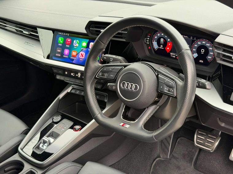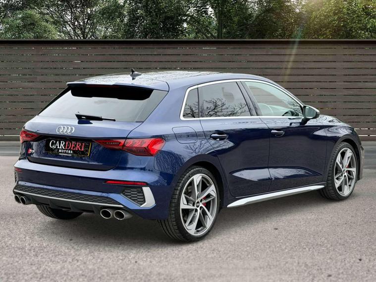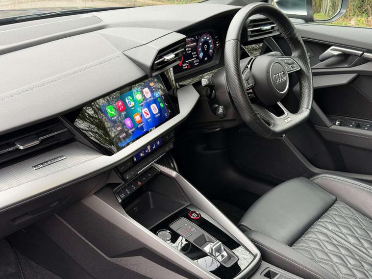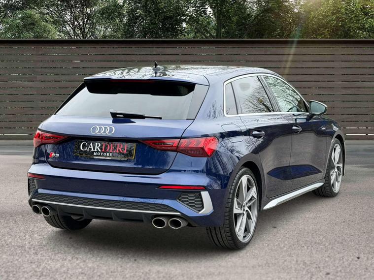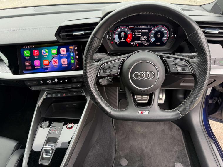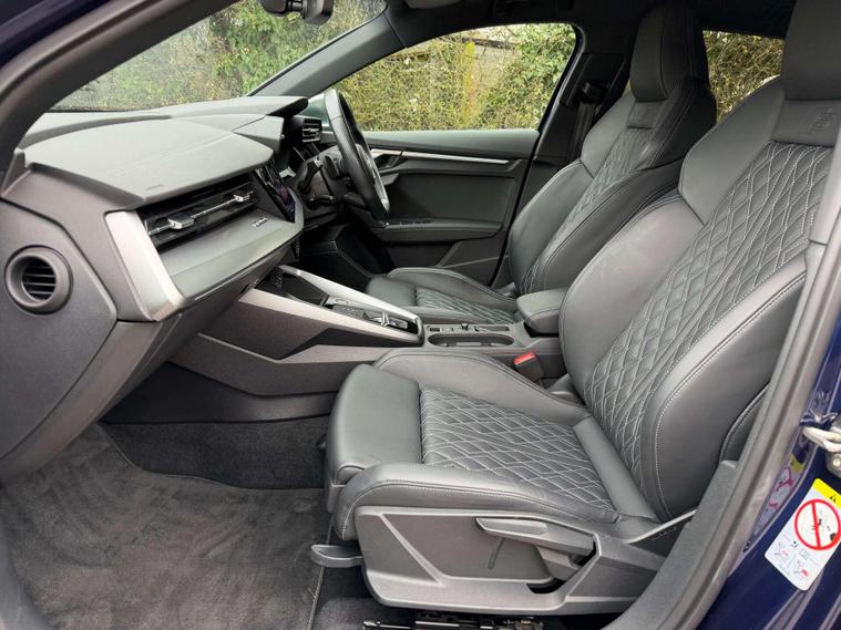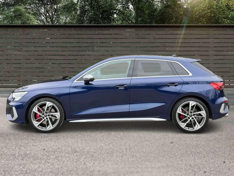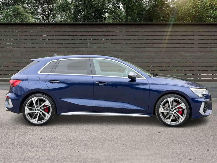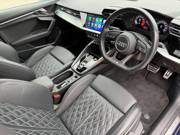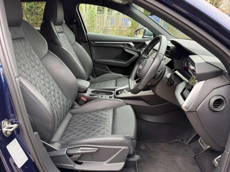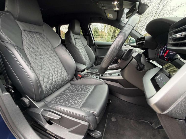 Presented in stunning Navarra Blue, this Audi S3 perfectly balances everyday usability with serious performance and premium specification. Sitting on 19in 5-Arm Trapezoid alloy wheels in Titanium Matt Grey with diamond-cut finish, paired with red brake calipers, the car has a sharp and purposeful stance that suits the S3’s sporty character.Inside, the cabin is finished with Fine Nappa Leather S-embossed front sports seats in black, offering a premium and supportive driving environment. The car is equipped with the sought-after Comfort and Sound Package, featuring the Bang & Olufsen premium sound system for exceptional audio quality, along with ambient interior lighting that elevates the cabin atmosphere day or night. Practicality and ease of driving are enhanced with adaptive cruise control, reverse camera, and the Driver Assistance Package, making long journeys and daily driving effortless. Additional features include High-Beam Assist headlights and rear side airbags with head airbag system for added safety and convenience.This example benefits from a full Audi service history, demonstrating excellent care and maintenance throughout its life. A superb all-round performance hatch that combines strong styling, refined comfort and impressive performance — ready for its next owner..