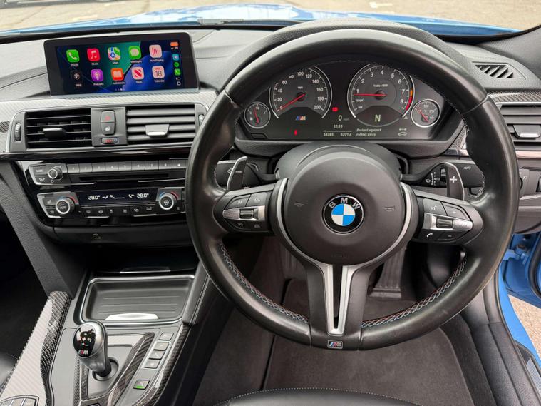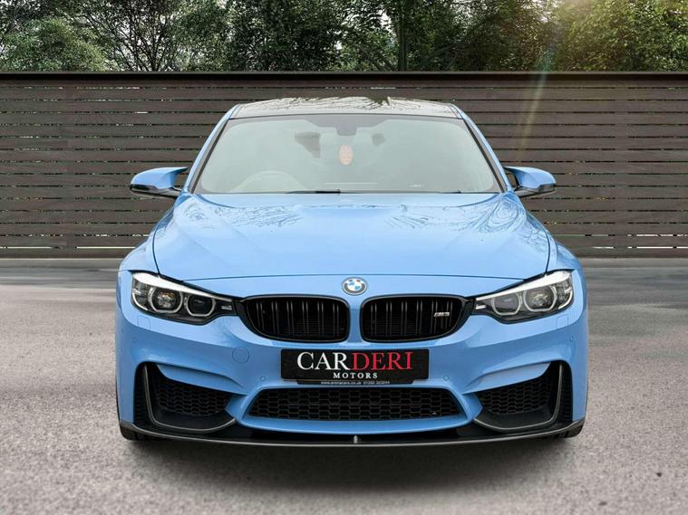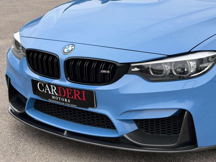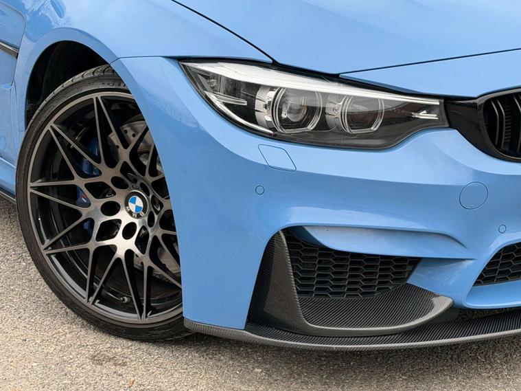 Presented in the iconic Yas Marina Blue, this BMW M3 Competition F80 combines aggressive styling with everyday usability and true M performance. Sitting on the sought-after 20in 666M forged alloys in black, this example is further enhanced with a full carbon fibre bodykit, giving the car a sharper, more purposeful stance that perfectly suits the Competition model.Inside, the cabin is finished in Extended Merino Leather – Black, paired with carbon fibre interior trim with black chrome finisher, creating a premium yet motorsport-inspired feel. Specification includes Head-Up Display, Harman Kardon loudspeaker system, Concierge Service, headlight wash, and sun protection glazing, offering the ideal balance between comfort, technology and driver focus.This car comes with a full service history, showing excellent upkeep and ownership, and drives exactly as an M3 should — sharp, responsive and engaging, with the added presence and exclusivity that a properly specified Competition model delivers.A genuinely eye-catching example with the right colour combination, strong factory options and tasteful carbon upgrades..