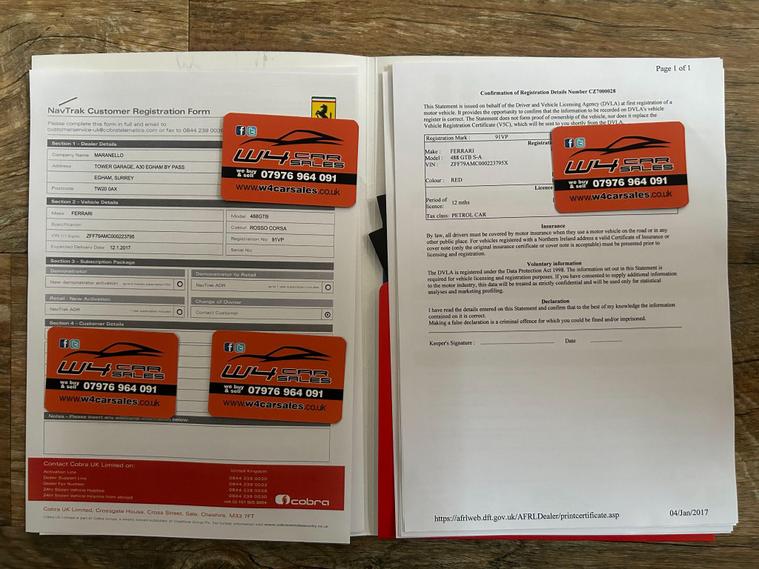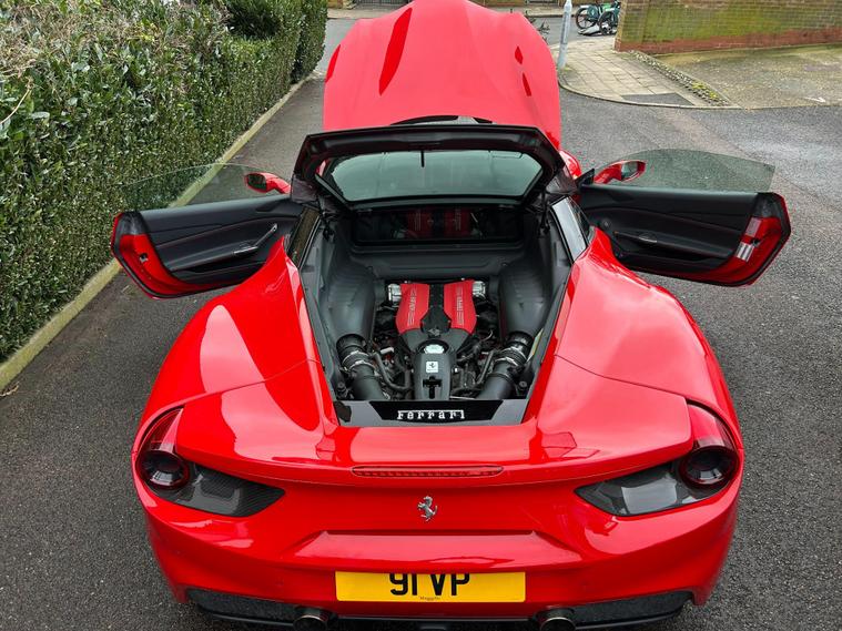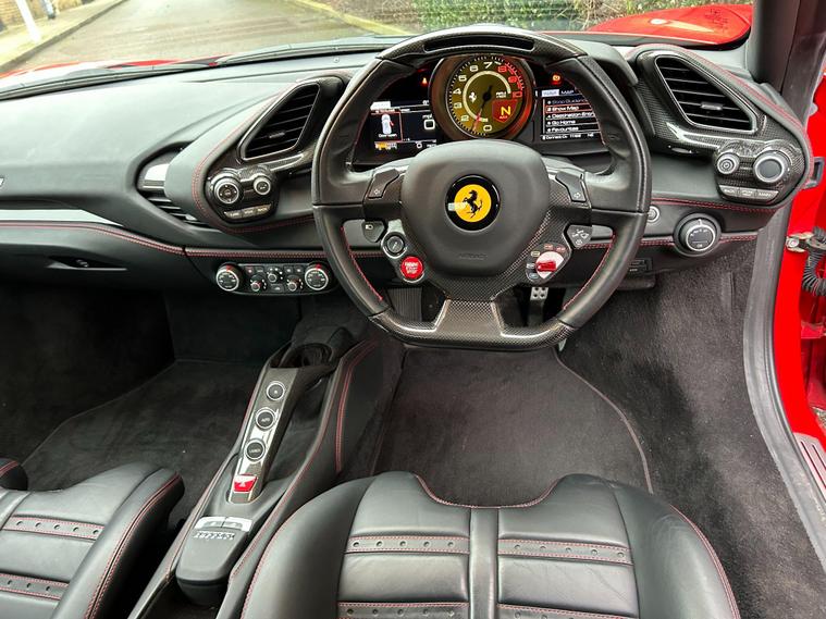 This 2017 Ferrari 488 T V8 GTB presents an exceptional ownership proposition, having been meticulously cared for by a single owner from new and boasting an incredibly low mileage of just 7985 miles. This Euro 6 compliant 3.9 litre petrol engine powerhouse, in its GTB trim, comes equipped with Bi-Xenon headlights for superior visibility, rear parking sensors to aid manoeuvring, and a dual zone air conditioning system for personalised comfort. The integrated infotelematic system, complete with Bluetooth connectivity, ensures you stay connected on every journey.The performance of this Ferrari 488 is truly remarkable, with its ability to accelerate from 0 to 62 miles per hour in a mere 3.0 seconds. This impressive acceleration figure highlights how this particular vehicle surpasses many others in its class, offering an exhilarating driving experience. Combined with its outstanding provenance and desirable features, this Ferrari 488 T V8 GTB represents a unique opportunity for discerning buyers..