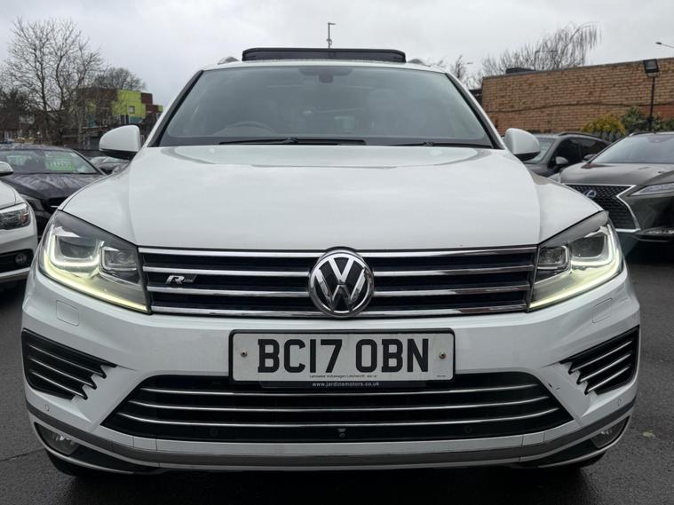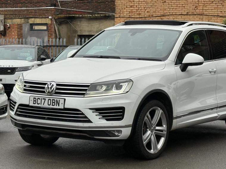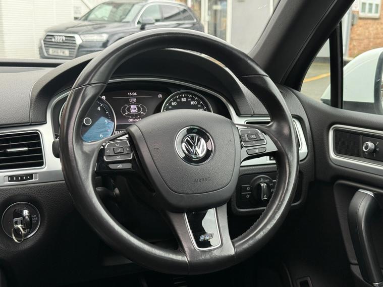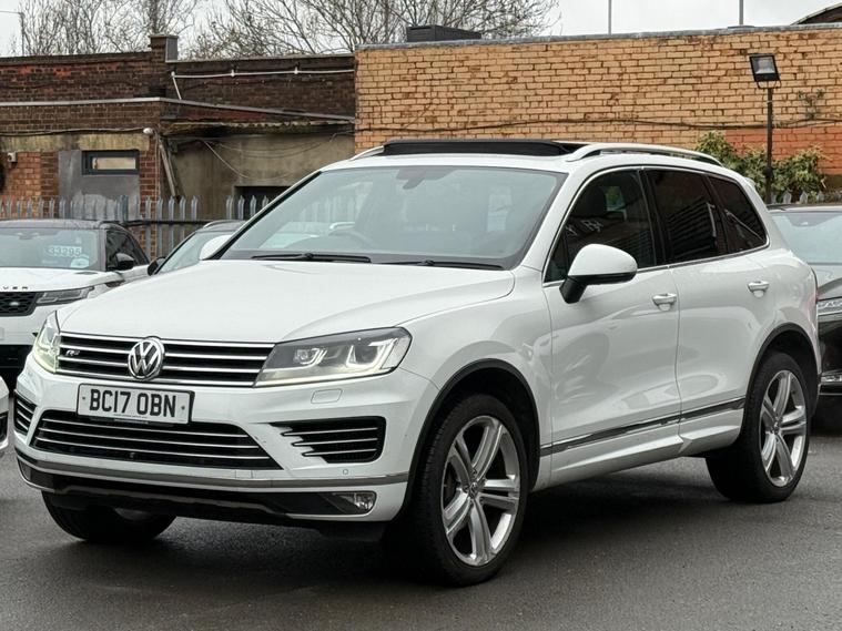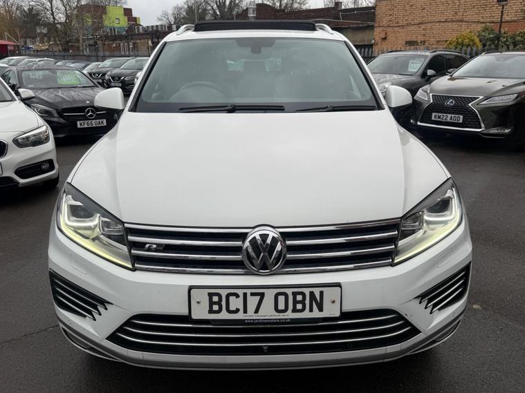 With a full service history and MOT valid until June 2026, this 2017 Volkswagen Touareg TDI V6 R-Line Plus offers excellent provenance. This capable Four Wheel Drive SUV is powered by a 3.0L Diesel engine, meeting Euro 6 emissions standards. It boasts a substantial 3500 kg towing weight, making it ideal for larger loads. Inside, you'll find comfortable Heated Front Seats, a Multifunction Heated R-Line Steering Wheel with paddle shift and controls, and a luxurious Panoramic Sunroof. Connectivity is enhanced with Bluetooth Telephone Preparation, and parking is made easier with the Area View 360 degree camera system.This R-Line Plus model also benefits from a low insurance group, offering cost savings. The generous boot space ensures practicality for all your needs. For those seeking performance, the 0-62mph acceleration in just 7.3 seconds demonstrates its impressive power. These highlights collectively indicate that this Volkswagen Touareg is a superior choice compared to other vehicles in its class, offering a blend of comfort, capability, and performance. A 3 month warranty is included for your peace of mind..