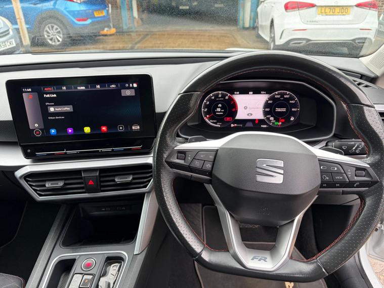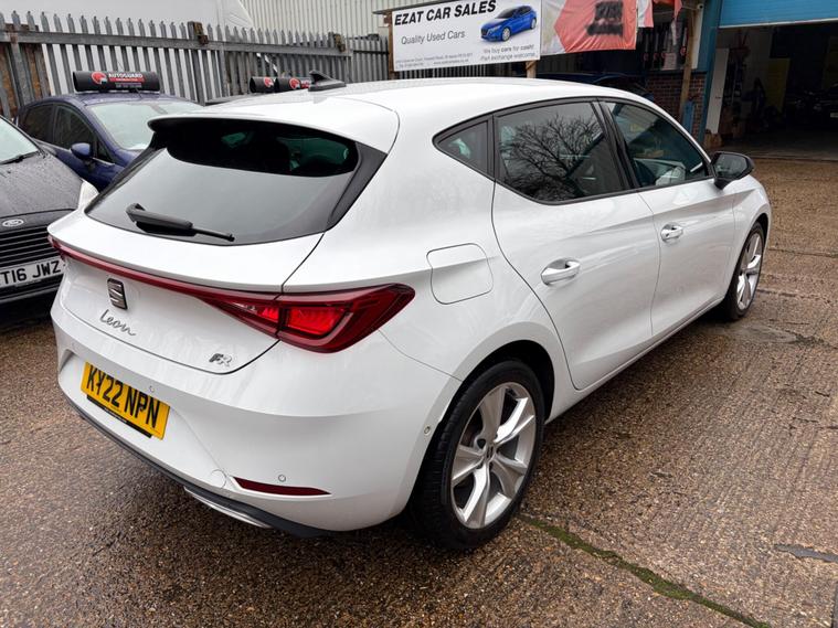 Here at Ezat Car Sales, we have on offer in white, a stunning 2022 SEAT Leon eTSI FR that boasts a recent service in February 2026 at 74, 522 miles, offering peace of mind alongside its Euro 6 compliant 1.0 litre petrol hybrid engine. It starts and drives faultlessly and has been thoroughly checked over by us to ensure there is nothing wrong with the car. It is also in excellent condition both for the interior and exterior and has been looked after. This FR trim model comes with a clear vehicle history check and is supplied with 12 months MOT, plus a 6 month warranty for added reassurance. You'll find partial service history documented for this well maintained vehicle.Experience enhanced driving with the Safety and Driving Pack, featuring adaptive cruise control for effortless journeys. Stay connected and entertained with Full Link Smartphone Integration, offering wireless Apple CarPlay and wired Google Android Auto. The Leon also includes automatic headlights with a coming home feature, dynamic LED headlights with integrated turn signals, and a convenient wireless device charger. Furthermore, this model offers generous boot space, making it a practical choice for everyday needs and longer trips.Feel free to give us a call to book a viewing. Deposits are welcomed. This car comes with warranted mileage, full vosa history, comes with all documents, part EXCHANGE welcome, all our cars come fully VALETED, inspected and test drives are welcome, all major credit/debit card and online payments accepted, FINANCE can be arranged, nationwide delivery available. Visit our website for more affordable cars dealer's website
