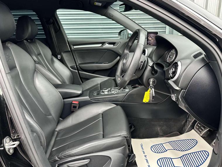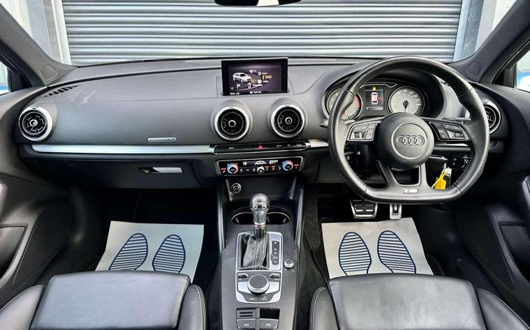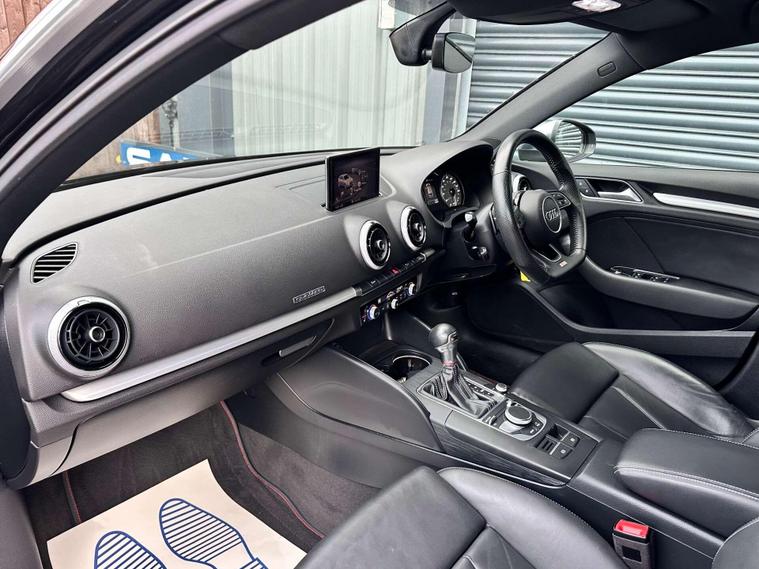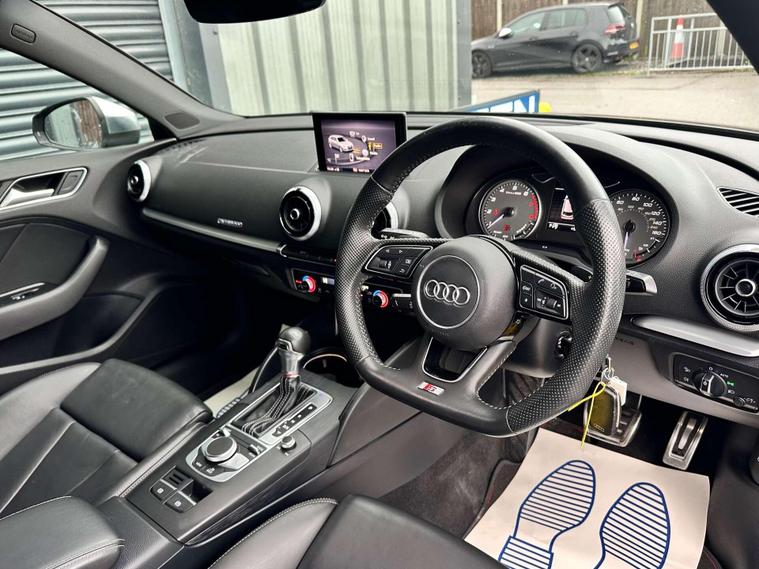 Audi S3 2.0 Sportback TFSI Quattro Semi-Auto 4WD 5dr finished in Agate Black with Ebony embossed 'S' leather seats.18'' alloy wheels, DAB radio, Bluetooth, Audi Sound System, Audi Smartphone Interface, MMI Radio+ with 7''electrically retractable screen, rear parking sensors, cruise control, electrically adjustable and heated door mirrors, heated windscreen washer jets, front and rear electric windows, LED DRL's, storage package, 3-Spoke flat bottom multifunction Nappa leather wrapped steering wheel, dual zone electric climate control, heated front seats.Here at Saracen Motor Group we have been awarded AA Platinum dealership recognition along with being nominated for best customer service by Autotrader for 2021, 2022, 2023, 2024 & 2025. We are a 5-star dealership with over 600 5-star reviews across all internet platforms including Autotrader and have been regarded as one of the best dealerships to buy from in the UK.Our preparation team inspects each vehicle to the highest level possible for its age and mileage. You can rest assured your next car has been cared for to the highest standard. Service history, V5 and the HPI certificate will all be present on viewing and collection. With our location based in Battlesbridge, Essex you can enjoy a haggle-free buying experience where you can drive away the same day if prior arranged, additional fees apply please see our website for details..