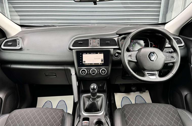 Renault Kadjar 1.3 Iconic TCe 5dr Euro 6 ULEZ FREE. Finished in Highland Grey with black contrast half-leather / half-suede and white diamond stitching interior.19'' 'Zeus' alloy wheels, Apple CarPlay/ Android Auto, R-Link 2 Multimedia system 7'' touchscreen, cruise control with speed limiter, ECO-mode, gear change indicator, lane departure warning, front and rear parking sensors, reversing camera, heated/ electrically adjustable and folding door mirrors, electric windows, privacy glass, heated rear screen, automatic headlights, automatic wipers, LED DRL's, dual zone climate control, air conditioning, faux leather wrapped multifunction steering wheel.Here at Saracen Motor Group we have been awarded AA Platinum dealership recognition along with being nominated for best customer service by Autotrader for 2021, 2022, 2023, 2024 & 2025. We are a 5-star dealership with over 600 5-star reviews across all internet platforms including Autotrader and have been regarded as one of the best dealerships to buy from in the UK.Our preparation team inspects each vehicle to the highest level possible for its age and mileage. You can rest assured your next car has been cared for to the highest standard. Service history, V5 and the HPI certificate will all be present on viewing and collection. With our location based in Battlesbridge, Essex you can enjoy a haggle-free buying experience where you can drive away the same day if prior arranged, additional fees apply please see our website for details..