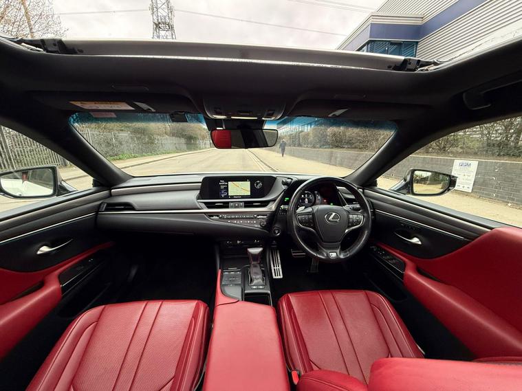 This 2019 Lexus ES 300h F Sport is presented with a clear vehicle history check, offering you peace of mind. This striking saloon features a 2.5 litre petrol hybrid engine, meeting Euro 6 emissions standards. Inside, you'll find a driver's memory seat for personalised comfort, and a dual zone automatic climate control system with a Climate Concierge and Nanoe Ion Generator for an optimised cabin environment. The exterior is enhanced by 2 eye LED headlights with Automatic High Beam, and the F Sport trim adds a distinctive touch.The Lexus Safety System Plus is included, providing adaptive cruise control for a more relaxed driving experience. This ES 300h F Sport also benefits from a sunroof, adding to the sense of space and light within the cabin. These features collectively demonstrate a superior level of refinement and technology compared to other vehicles in its class, making this Lexus ES a compelling choice for those seeking a premium hybrid saloon..
