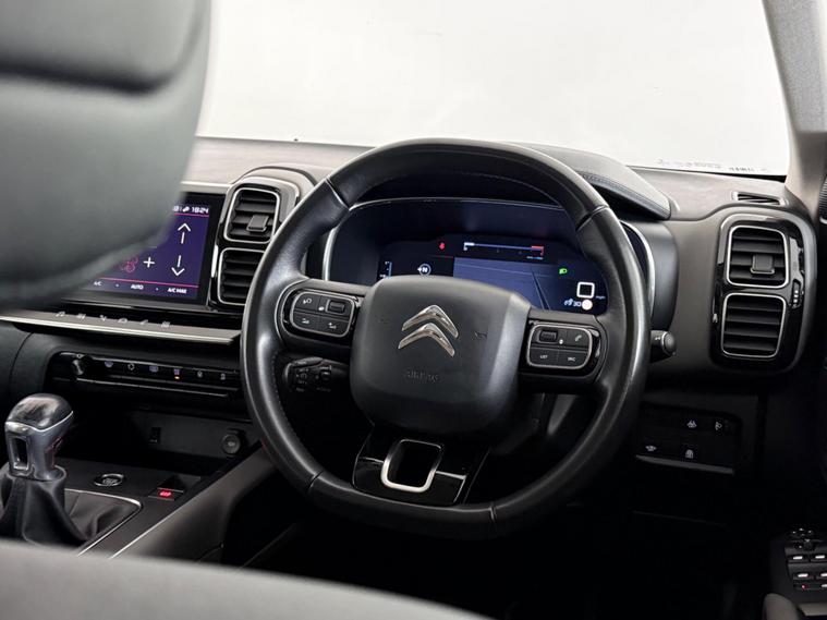 Our Citroen C5 Aircross is finished in Black. With a great specification, our C5 Aircross includes features such as 18 Inch Alloy Wheels, Electric Folding Mirrors, Front and Rear Electric Windows, Privacy Glass, Roof Rails, Air Conditioning, Apple Carplay, Bluetooth, DAB Radio, Multi-Function Steering Wheel, Parking Sensors, Reverse Camera, Satellite Navigation, Speed Limiter, USB, Black Half Leather Trim, Central Armrest, Cup Holders, Folding Rear Seats, Start/Stop Button, ISOFIX, LED Daytime Running Lights, LED Headlights, LED Tailights, Remote Central Locking. All Car Planet stock is carefully picked, so you can buy from us with confidence. Each vehicle undergoes a thorough 150-point check at our preparation hub by our qualified specialists. Every car purchased comes with a free 12-month AA breakdown cover plan option to extend to 60 months warranty. You can reserve any of our cars online, with a refundable £99 reservation at dealer's website We also offer the option to purchase online and you can have your new car delivered to your door step from £199 in as little as 48 hours. Alternatively, come and visit our Barnet site where our friendly Car Gurus will assist you every step of the way. If you prefer a virtual appointment, we offer same-day video-viewings. We offer a range of flexible finance options from our panel of lenders. Part-exchanges are available upon request. Simply select, secure and drive..
