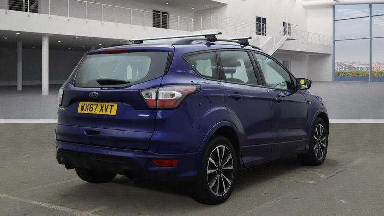 This 2017 Ford Kuga T ST-Line offers a compelling blend of style and technology, making it a standout choice. Powered by a 1.5 litre petrol engine and meeting Euro 6 emissions standards, this ST-Line trim vehicle is equipped with a Premium Ford DAB Navigation System featuring Ford SYNC3, which includes Bluetooth connectivity and rear parking assistance with a camera. You'll also benefit from Active City Stop for enhanced safety, and the SYNC 3 system boasts an 8 inch colour touchscreen with voice control, USB connectivity, and emergency assistance. Automatic halogen headlights with LED daytime running lights ensure visibility, and the DEATC dual zone electronic automatic temperature control provides a comfortable cabin environment.With an impressive fuel economy of 45 miles per gallon, this Ford Kuga T ST-Line demonstrates efficiency that sets it apart from other vehicles in its class. The combination of advanced navigation, comprehensive connectivity options, and driver assistance features like Active City Stop and automatic headlights contribute to a refined and convenient driving experience. The inclusion of climate control further enhances passenger comfort, making this Kuga a well rounded and desirable option for everyday journeys..
