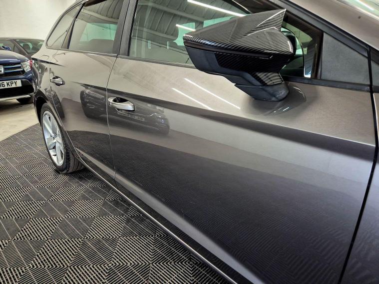 - Steering Wheel - Flat-Bottomed Perforated Leather with Red Stitching and FR Logo