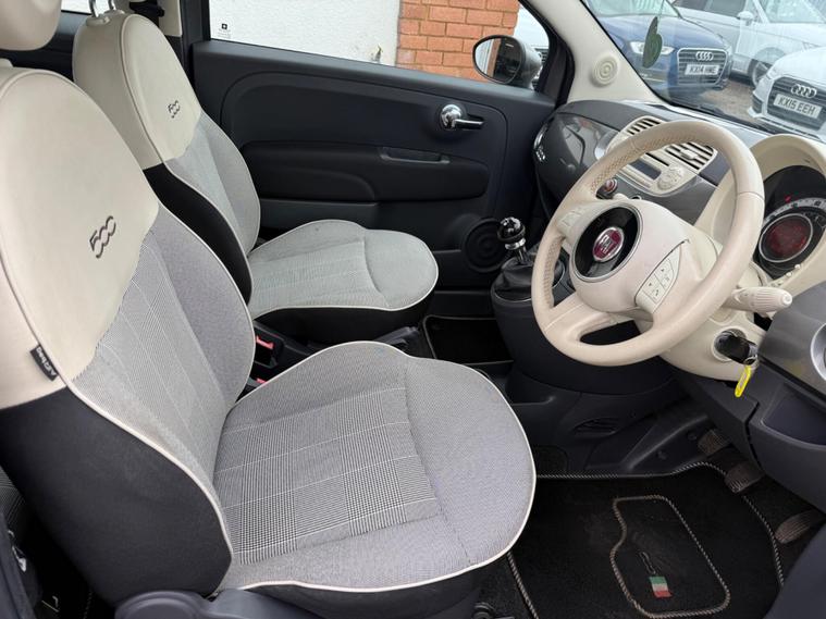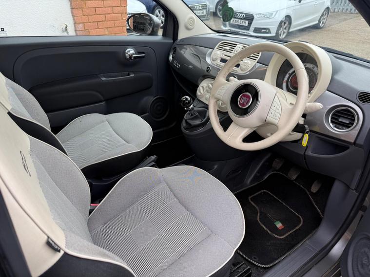 READY TO DRIVE AWAY*MOT ADVISORY HAS BEEN RECTIFIED*Discover this charming 2015 Fiat 500 Lounge, a stylish city car that offers an excellent blend of practicality and flair. This particular model boasts a Euro 6 compliant 1.2 litre petrol engine, ensuring it meets modern emissions standards. Inside, you'll find the Lounge trim offers a comfortable and convenient experience, featuring the Blue&Me hands free system with USB and Bluetooth connectivity, allowing you to stay connected on the go. The car also benefits from air conditioning to keep you cool, and a fixed glass roof that floods the cabin with natural light, creating an airy and pleasant atmosphere.This Fiat 500 Lounge stands out with its impressive fuel economy, achieving up to 60 miles per gallon, which is significantly better than many other cars in its class. Its low CO2 emissions further contribute to its economical running costs. Additionally, this model falls into a low insurance group, making it an affordable choice for many drivers. The inclusion of passenger seat memory function is a thoughtful touch, adding to the overall convenience and user friendly nature of this well equipped Fiat 500..