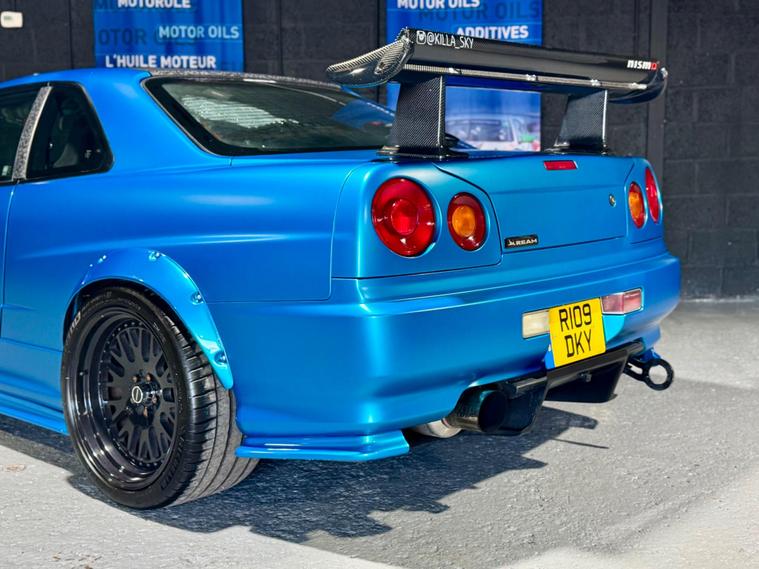 Dorset Prestige Cars are proud to present a one-off 1998 Nissan Skyline GTT, a true performance icon built exclusively by Kream Developments in England for the Fast and Furious red carpet event.Key Features: • Power & Performance: 830 brake horsepower with a fully forged engine built by Richard Bell (Bells Auto’s), with an engine build costing £20, 000. Big break upgrade. Link G4+ Engine Management System. • Striking Looks: Custom paintwork, a full GTR front end, and LM400 split rims for that unmistakable presence. • Aerodynamic Enhancements: Nisco rear carbon fibre wing for added style and downforce. • Upgrades & Maintenance: Recent work includes a new turbo, new Halteck dash, new radiator, new intercooler, a complete service, and a cambelt replacement, new crank seal, gearbox and diff oil service, front kingpin bearing replaced, new oil cooler and fittings, new catch can, new brake pads, new intercooler, new fuel pumps x2 (walbro) new turbo Pulsar G35 1050 with T51 Mod, new alternatorSerious inquiries only.Contact now to arrange a viewing and experience this masterpiece for yourself..