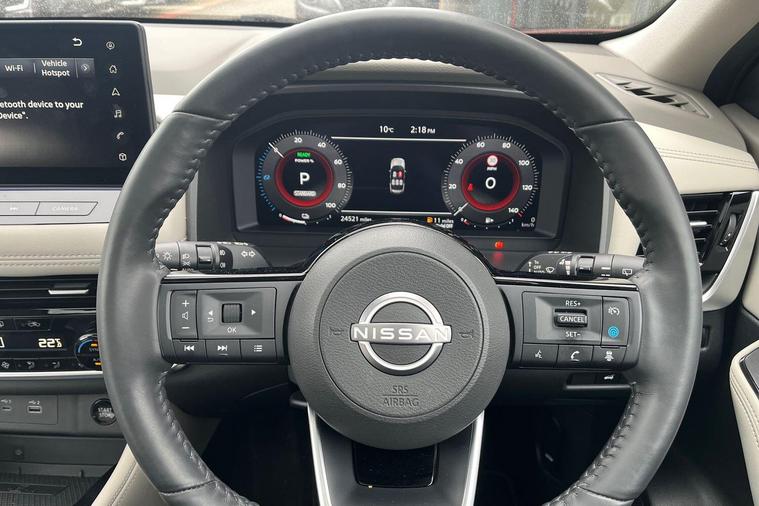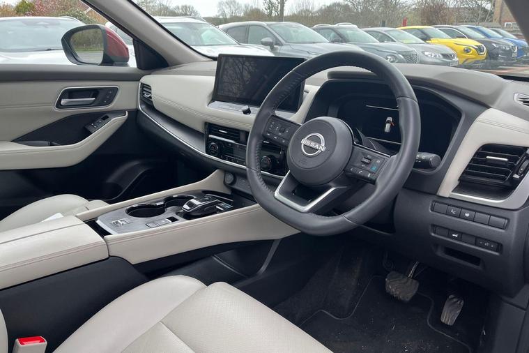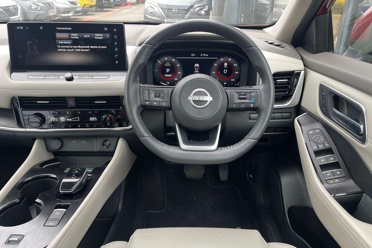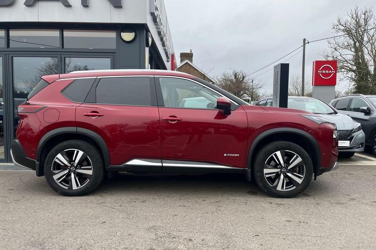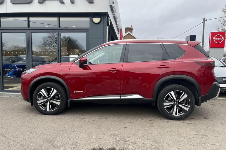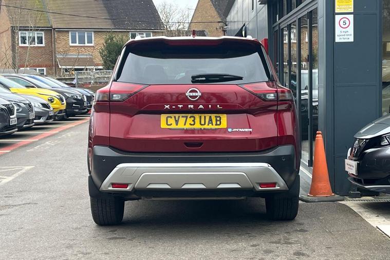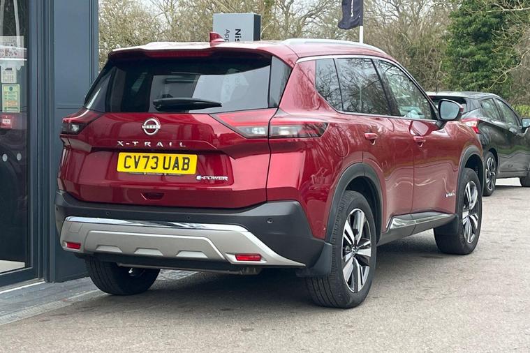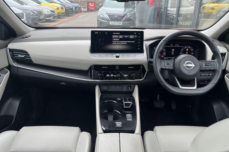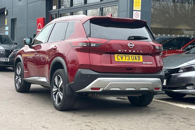 This 2023 Nissan X-Trail e-POWER Tekna is a Nissan manufacturer approved vehicle with only one owner from new. It features a 1.5 litre petrol hybrid engine, meeting Euro 6 emission standards. This Tekna trim level comes equipped with advanced technology, including wireless Apple CarPlay, LED headlights with adaptive driving beam, and a rear view camera. For enhanced parking convenience, it also boasts an intelligent Around View Monitor providing a 360 degree camera view, and Blind Spot Warning to assist with lane changes.The X-Trail e-POWER Tekna offers impressive performance, accelerating from 0 to 62 miles per hour in just 8.0 seconds, demonstrating its responsive power. This acceleration figure highlights its capability compared to other vehicles in its class. Furthermore, the generous boot space ensures ample room for luggage and shopping, making it a practical choice for families and everyday use..