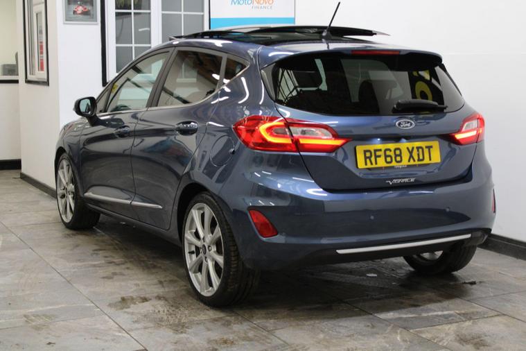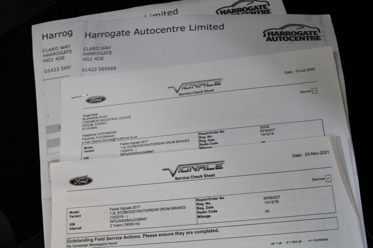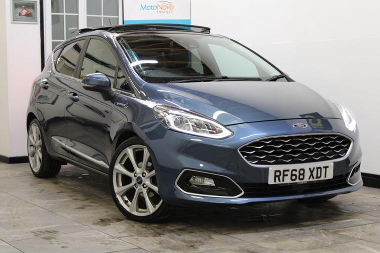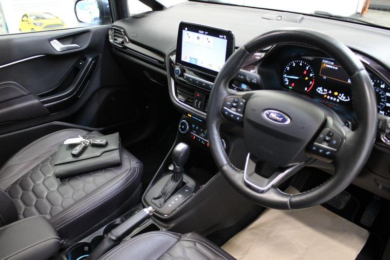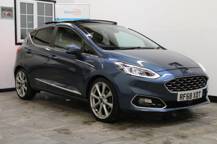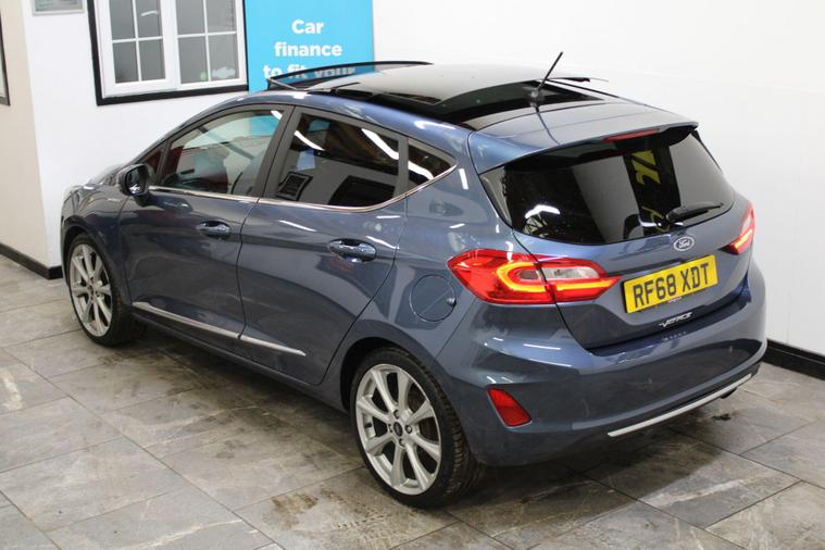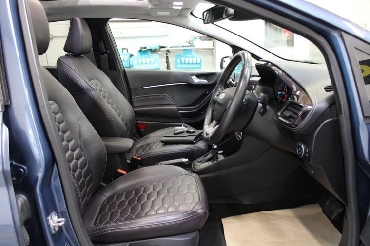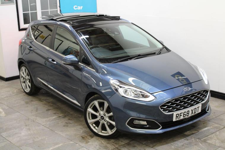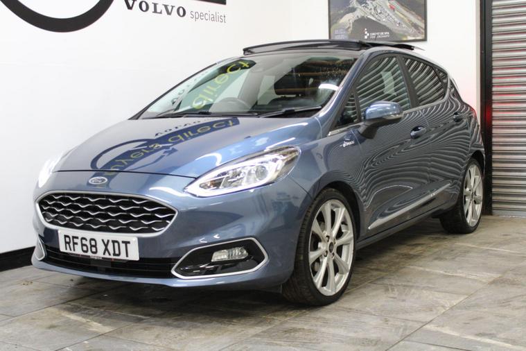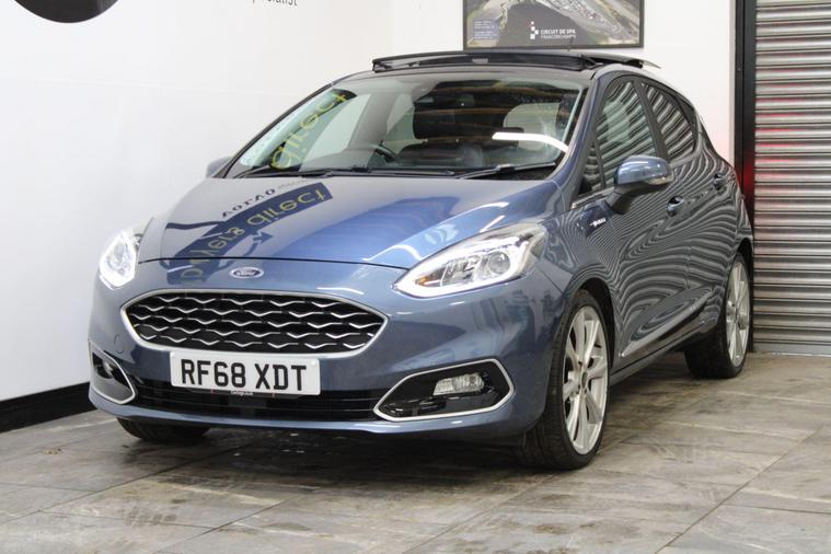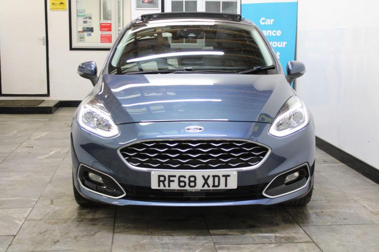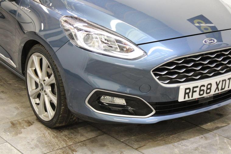 This 2018 Ford Fiesta Vignale T is presented with a full service history, ensuring its excellent provenance. This particular model boasts the refined Vignale trim and is powered by an efficient 1.0L Euro 6 petrol engine. For your peace of mind, a service, wetbelt change and 12 month MOT will be provided upon purchase.Experience enhanced comfort and convenience with features such as rear parking distance sensors and automatic on-off headlights with high beam assist. The electronic automatic temperature control air conditioning ensures a pleasant cabin environment, while the opening panorama roof adds a sense of spaciousness. These notable features, combined with the comprehensive service history and 12 month MOT, demonstrate the superior care and specification of this Ford Fiesta Vignale T compared to other vehicles of its kind..