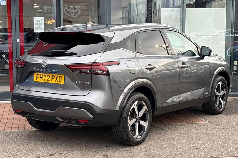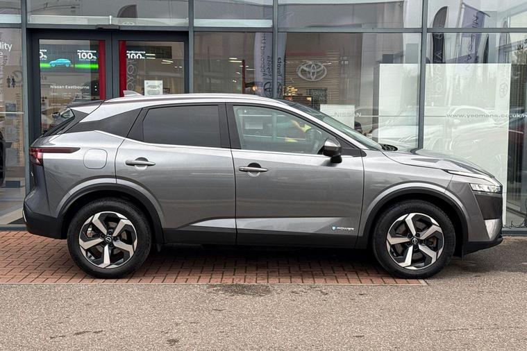 This 2023 Nissan Qashqai h e-POWER N-Connecta boasts a full dealership service history and remains Nissan manufacturer approved, offering peace of mind for its next owner. This one owner vehicle has covered a low mileage of just 21455 miles, with its last service completed on 29 January 2025 at 15638 miles. The MOT is valid until November 2026. Under the bonnet, you'll find an efficient 1.5L Petrol Hybrid Engine, meeting Euro 6 emission standards. Notable features include the Glass Roof Pack with a panoramic sunroof, Wireless Apple CarPlay, Intelligent Blind Spot Intervention, Blind Spot Warning, and the Intelligent Around View Monitor for effortless parking with its 360 degree camera.Experience the impressive performance of this Qashqai, accelerating from 0 to 62mph in just 7.9 seconds, a testament to its advanced hybrid technology. Its fuel economy is a standout at 54 mpg, making it more economical than many similar vehicles. Furthermore, this model offers a large boot space, ideal for families and everyday practicality, alongside low CO2 emissions, highlighting its environmental consideration..